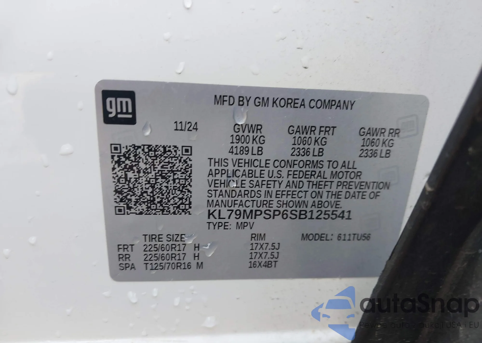 The car Chevrolet TrailBlazer 2025 (VIN KL79MPSP6SB125541) is sold by an unverified seller. We recommend checking the Carfax report and confirming registration possibilities before purchase.