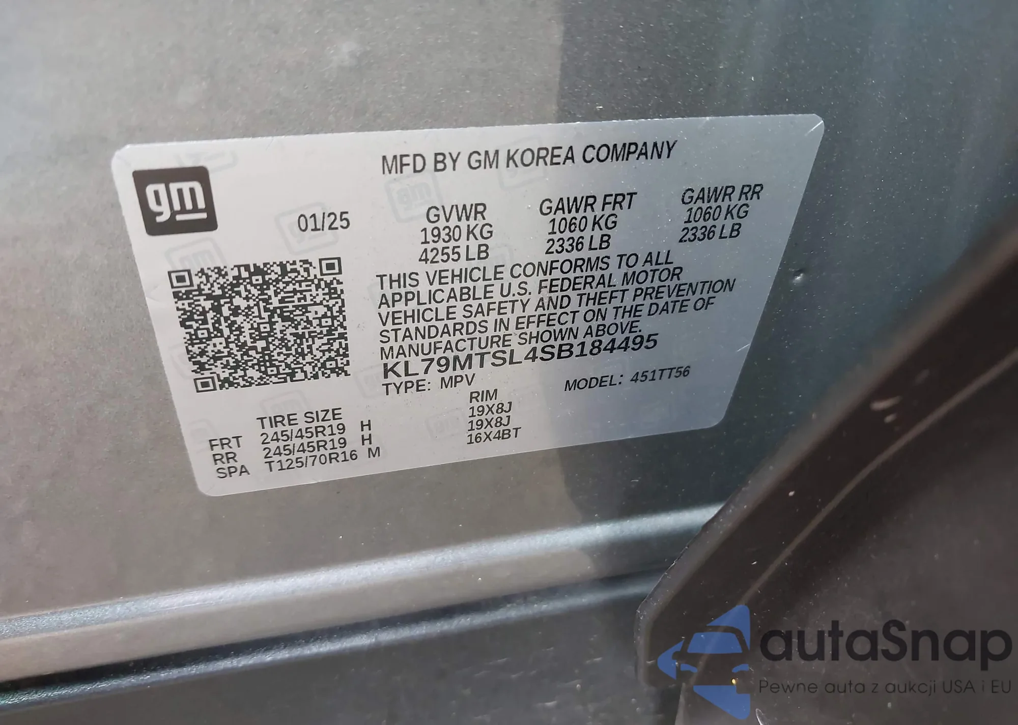 VIN: KL79MTSL4SB184495