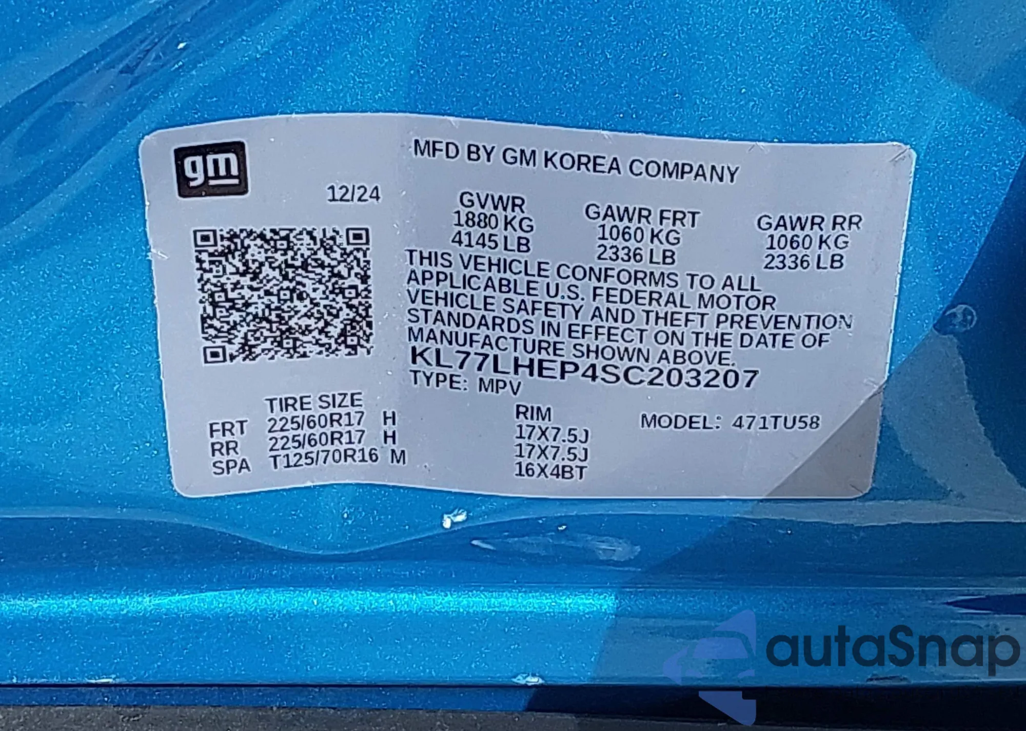 VIN: KL77LHEP4SC203207