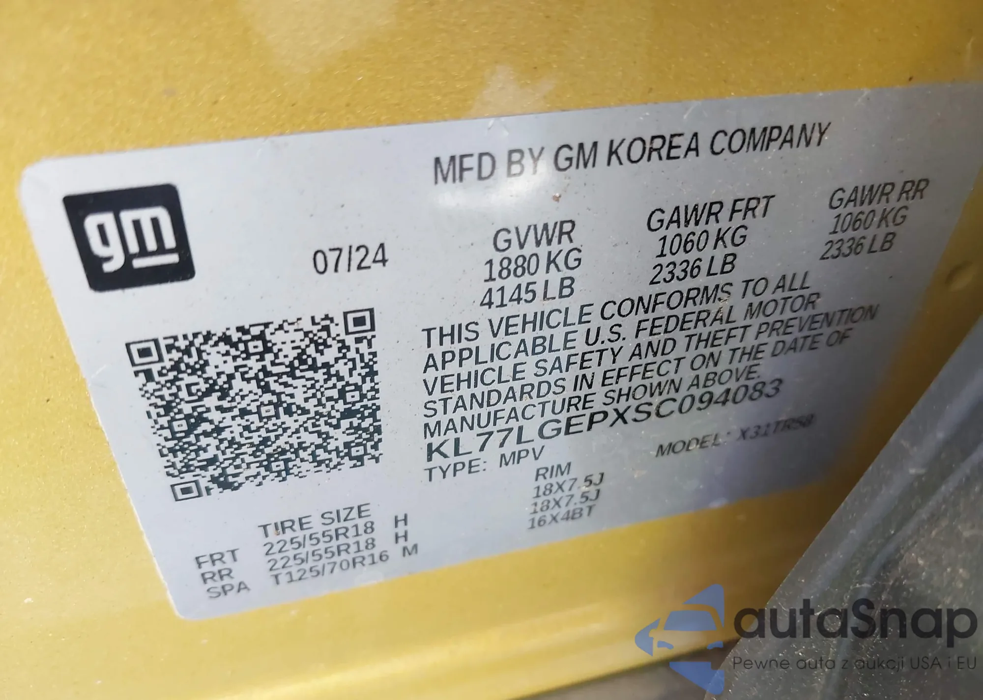 VIN: KL77LGEPXSC094083