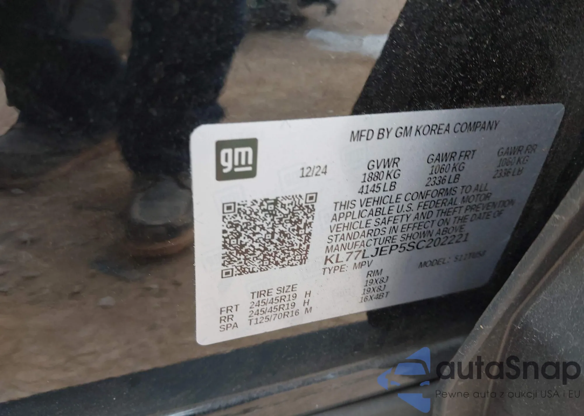 The car Chevrolet Trax 2025 (VIN KL77LJEP5SC202221) has not been auctioned before. The documents are clean, and the mileage matches or is below the market average. Sold by an insurance company – we recommend purchase. Delivery to the port will take approx. 6–8 weeks.