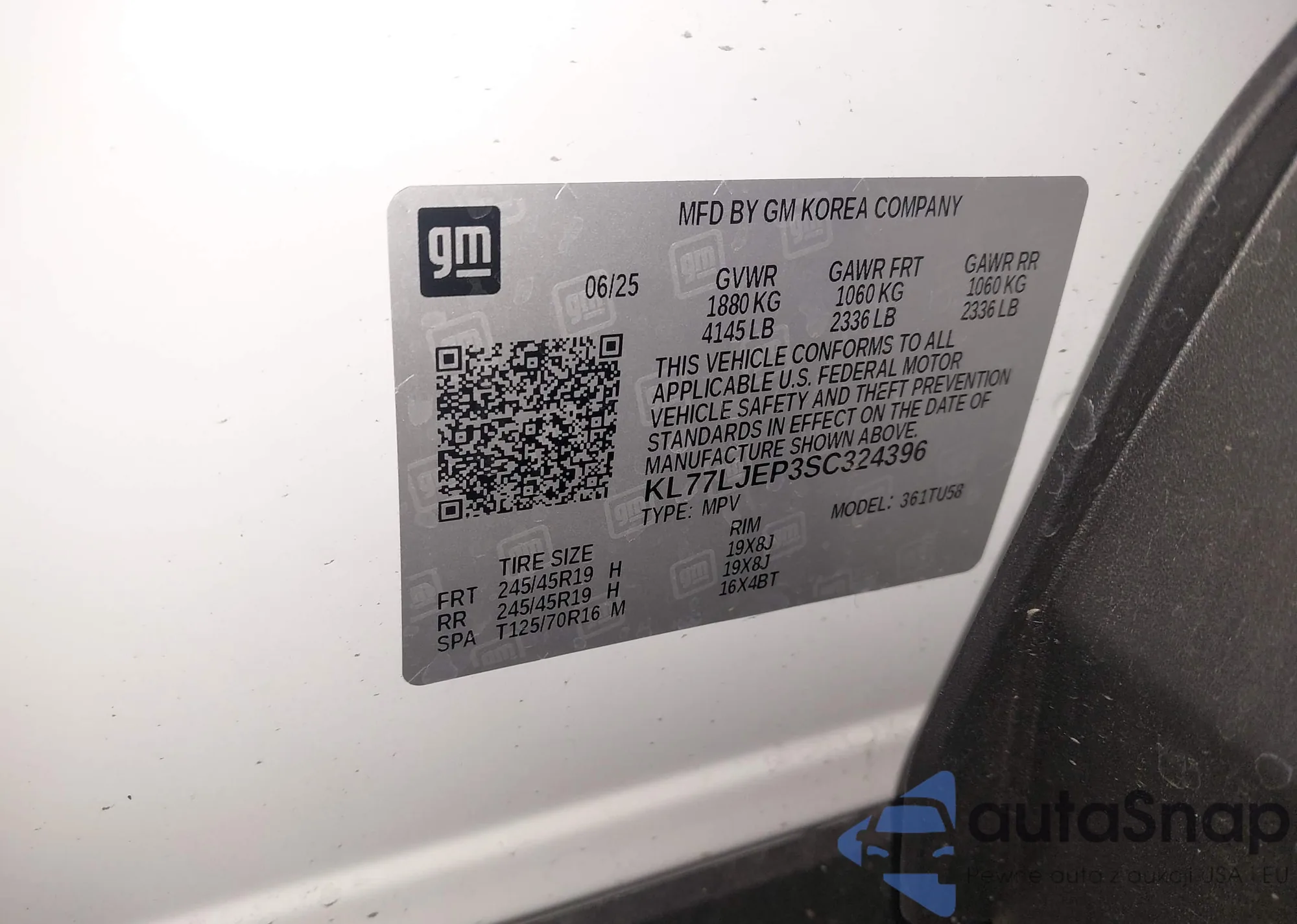 VIN: KL77LJEP3SC324396