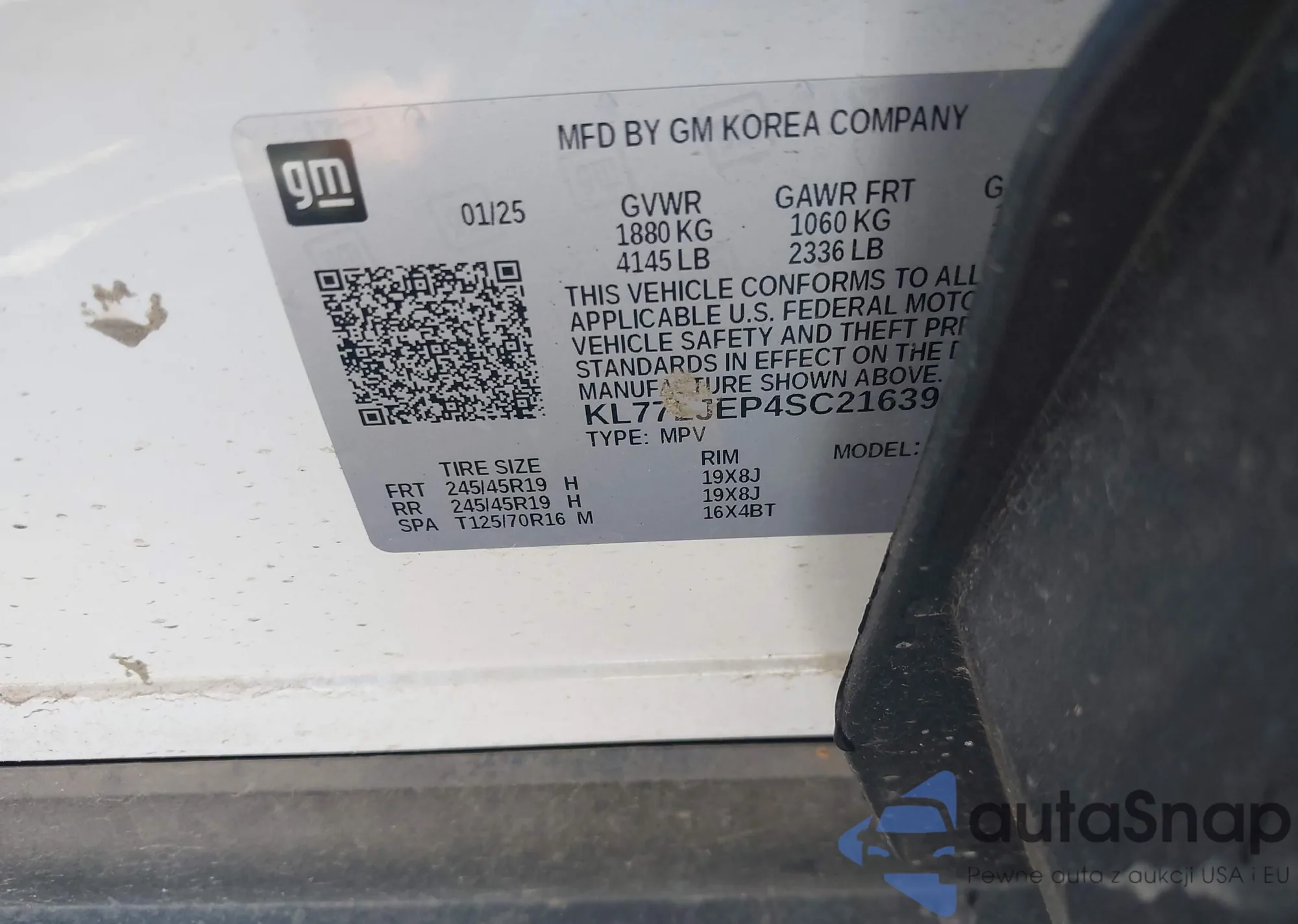 VIN: KL77LJEP4SC216398