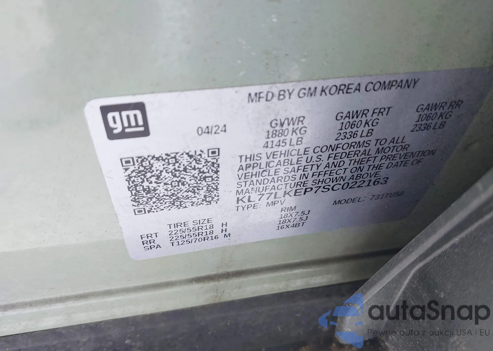 The car Chevrolet Trax 2025 (VIN KL77LKEP7SC022163) has not been auctioned before. The documents are clean, and the mileage matches or is below the market average. Sold by an insurance company – we recommend purchase. Delivery to the port will take approx. 6–8 weeks.