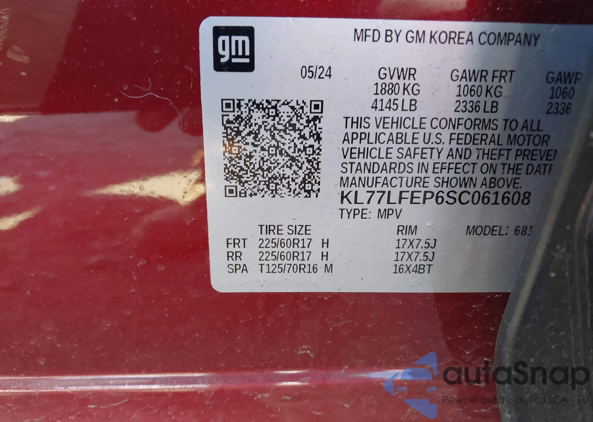 VIN: KL77LFEP6SC061608
