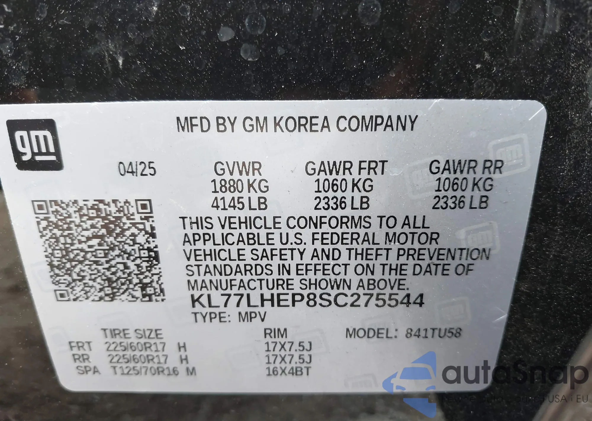 VIN: KL77LHEP8SC275544