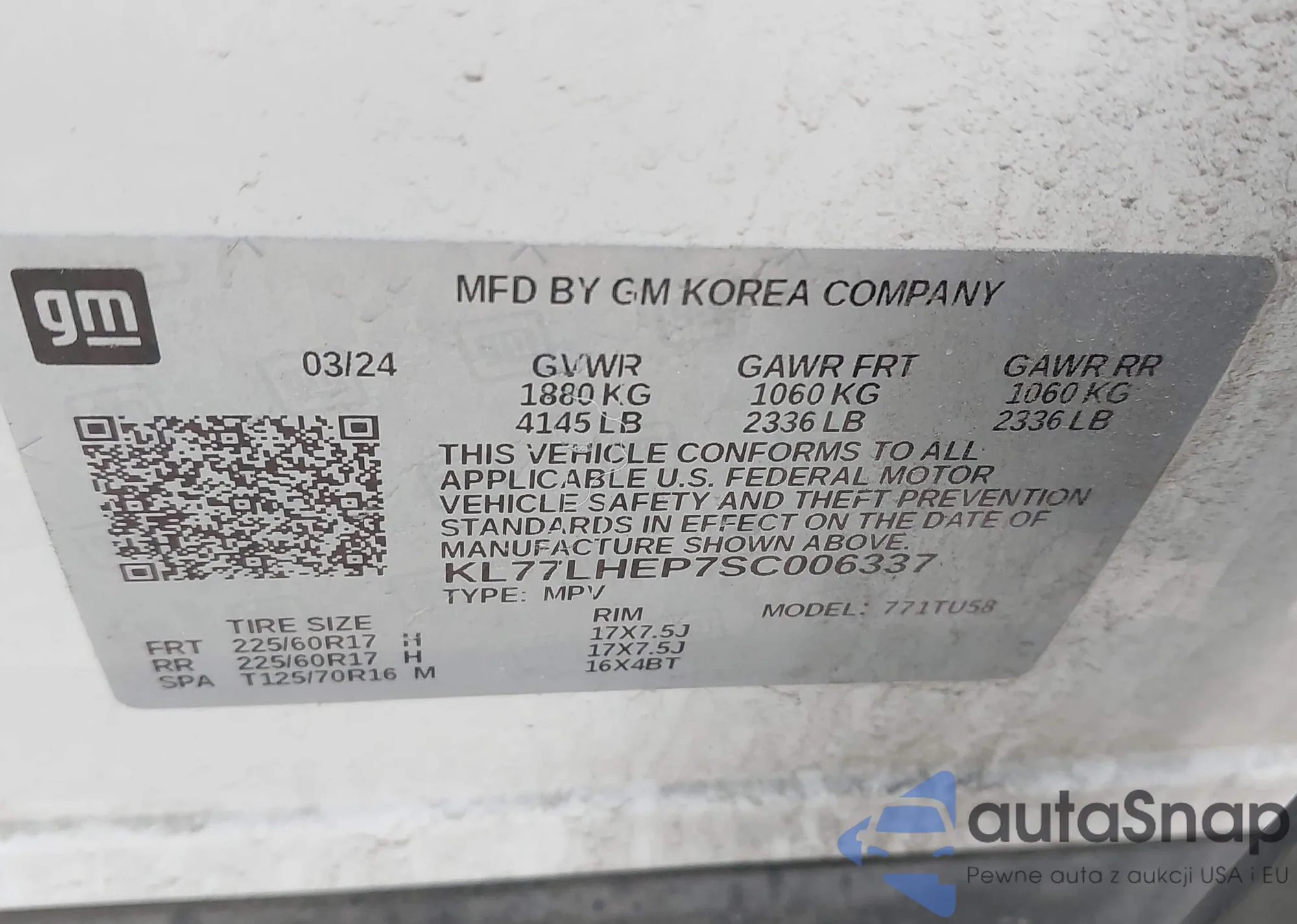 The car Chevrolet Trax 2025 (VIN KL77LHEP7SC006337) has not been auctioned before. The documents are clean, and the mileage matches or is below the market average. Sold by an insurance company – we recommend purchase. Delivery to the port will take approx. 6–8 weeks.
