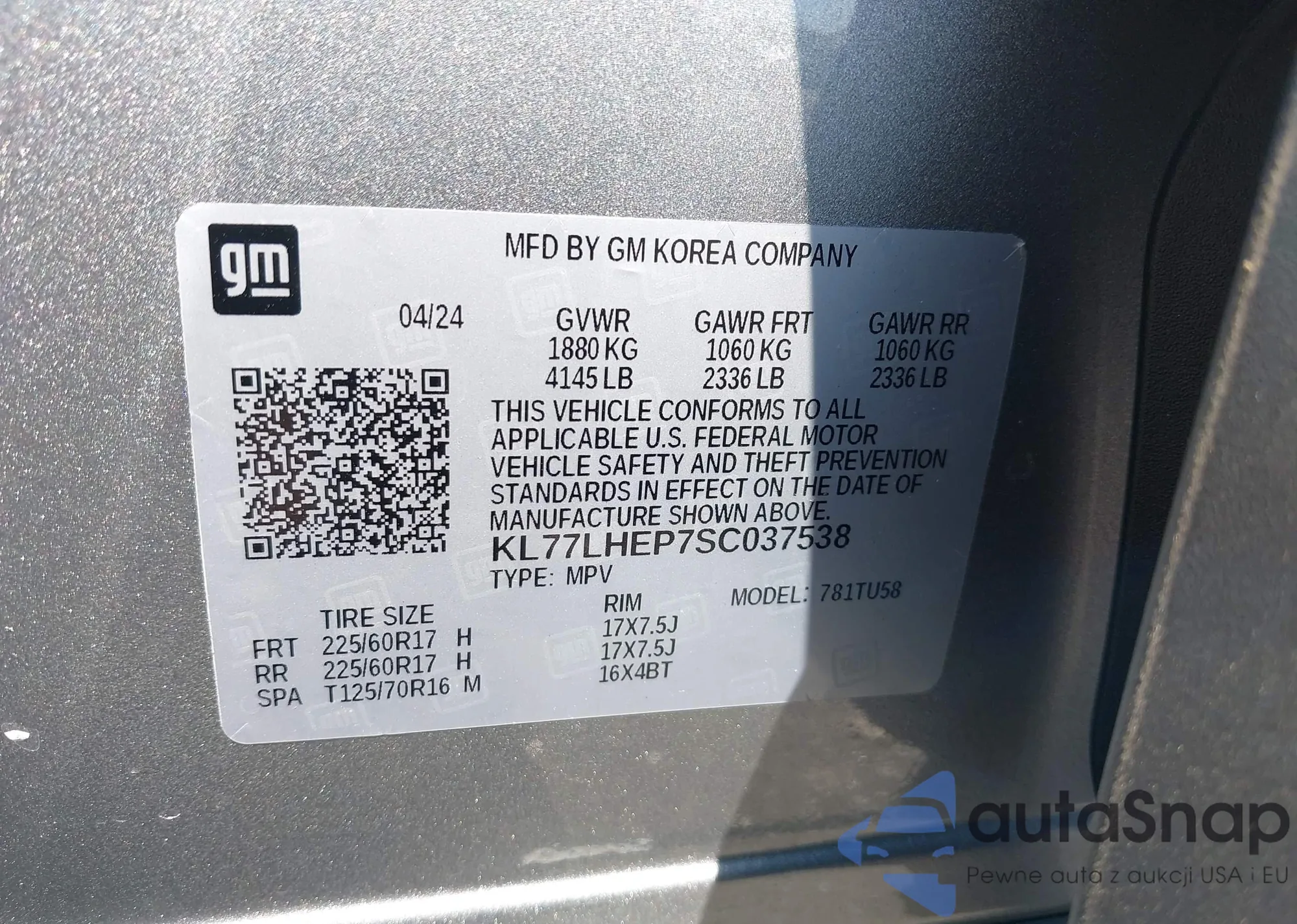 VIN: KL77LHEP7SC037538