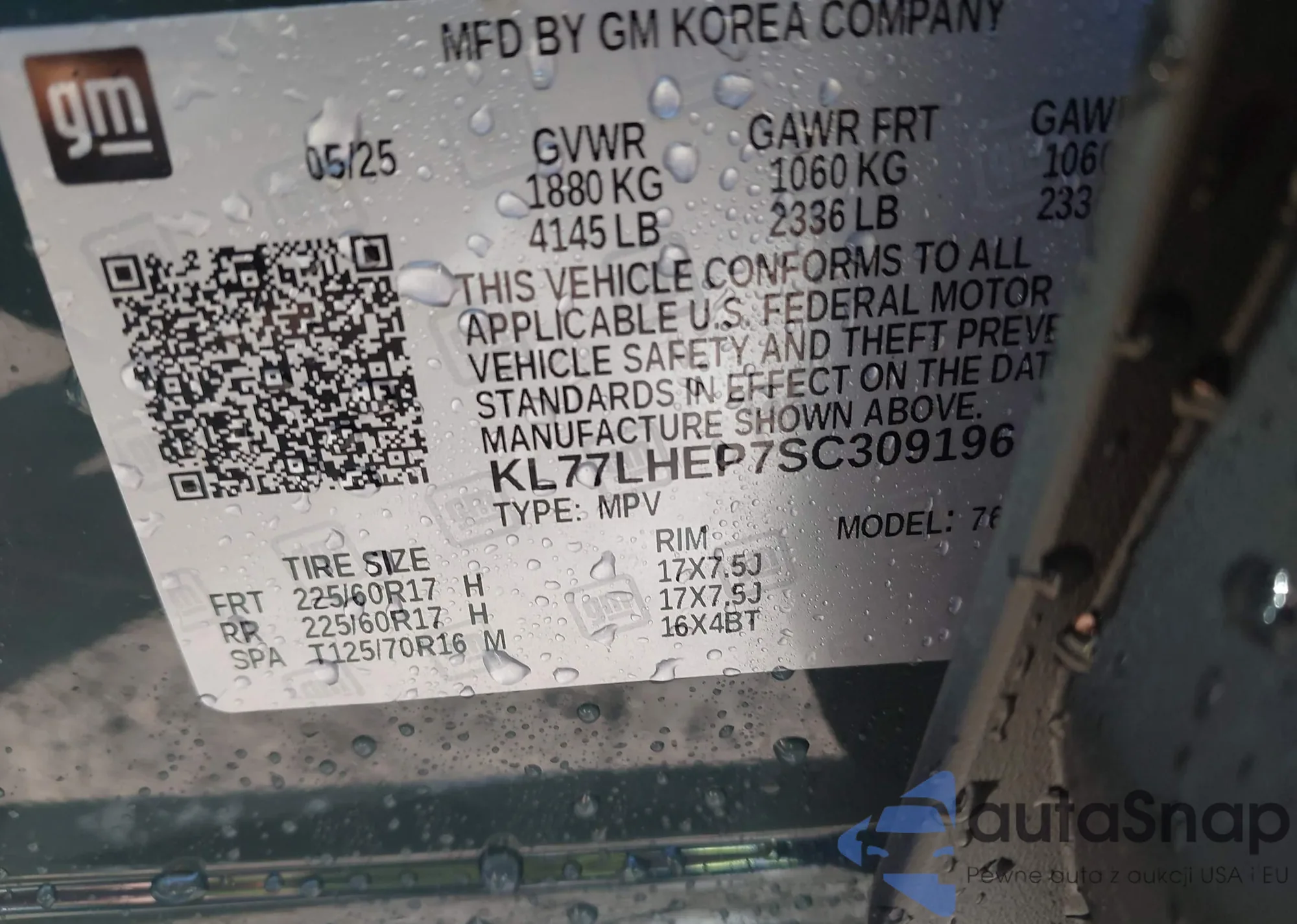 VIN: KL77LHEP7SC309196