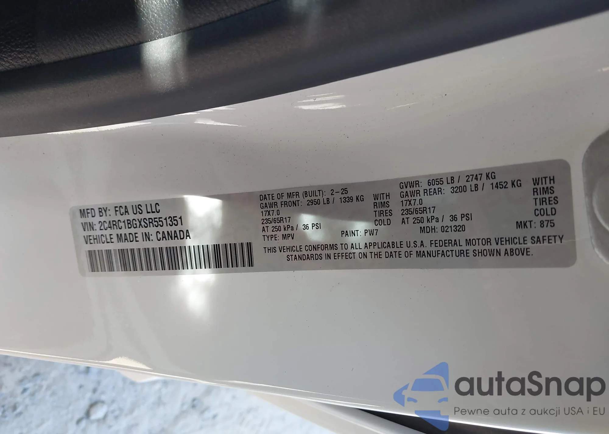 VIN: 2C4RC1BGXSR551351