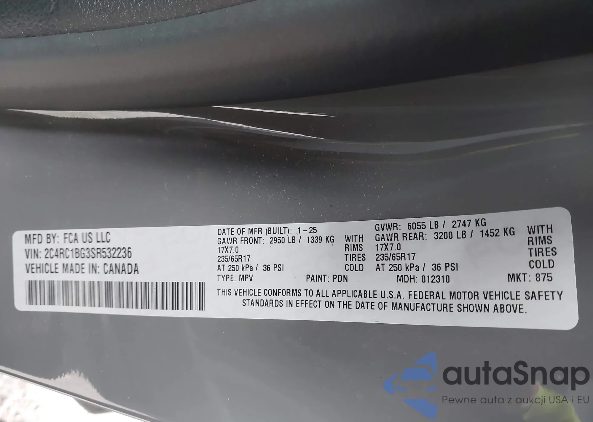 VIN: 2C4RC1BG3SR532236