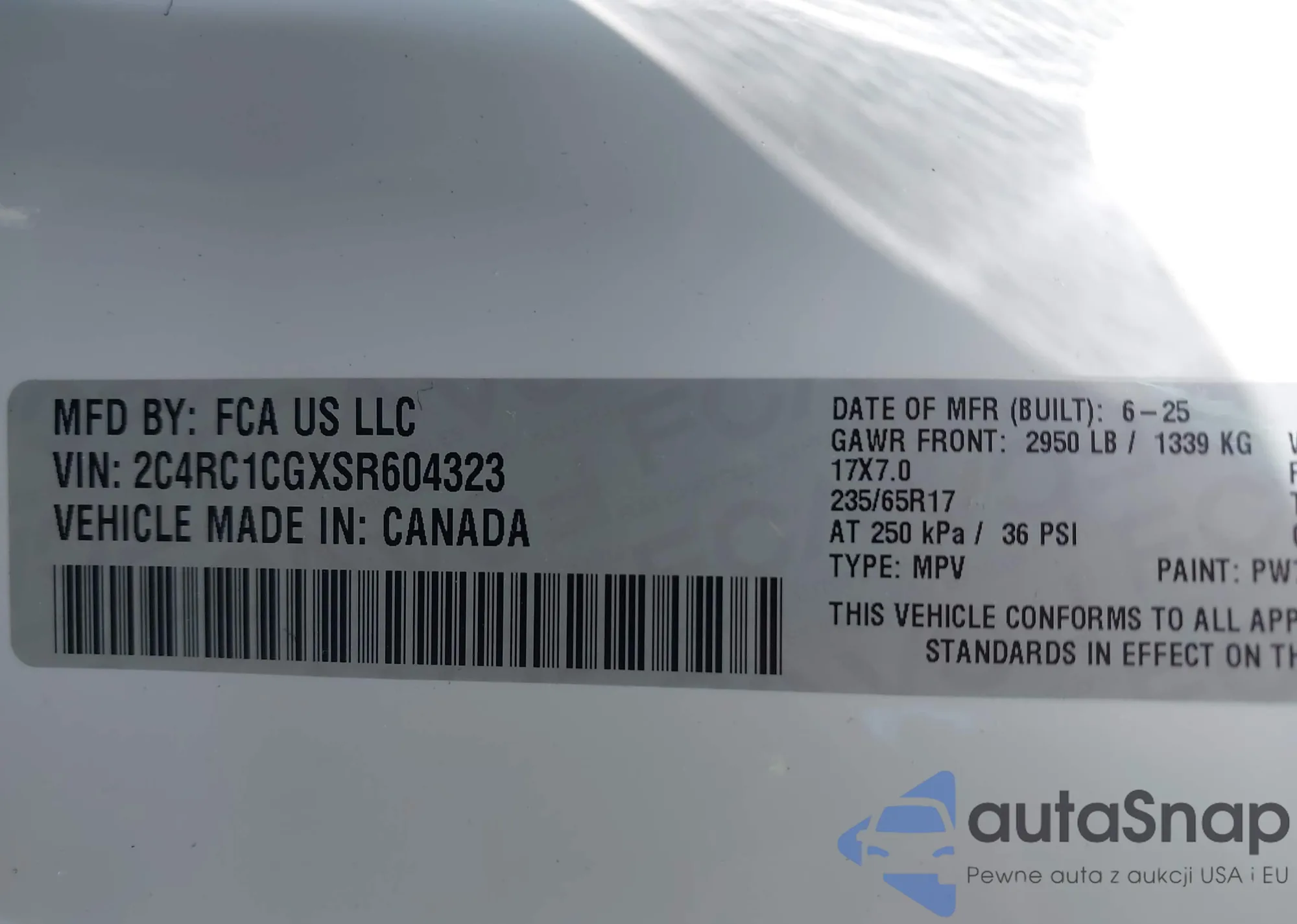 VIN: 2C4RC1CGXSR604323