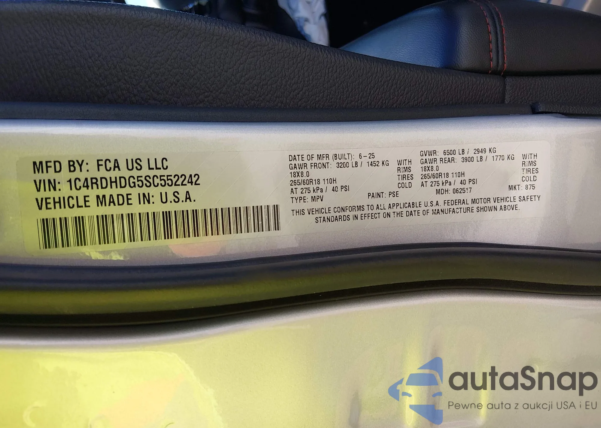 The car Dodge Durango 2025 (VIN 1C4RDHDG5SC552242) is sold by an unverified seller. We recommend checking the Carfax report and confirming registration possibilities before purchase.