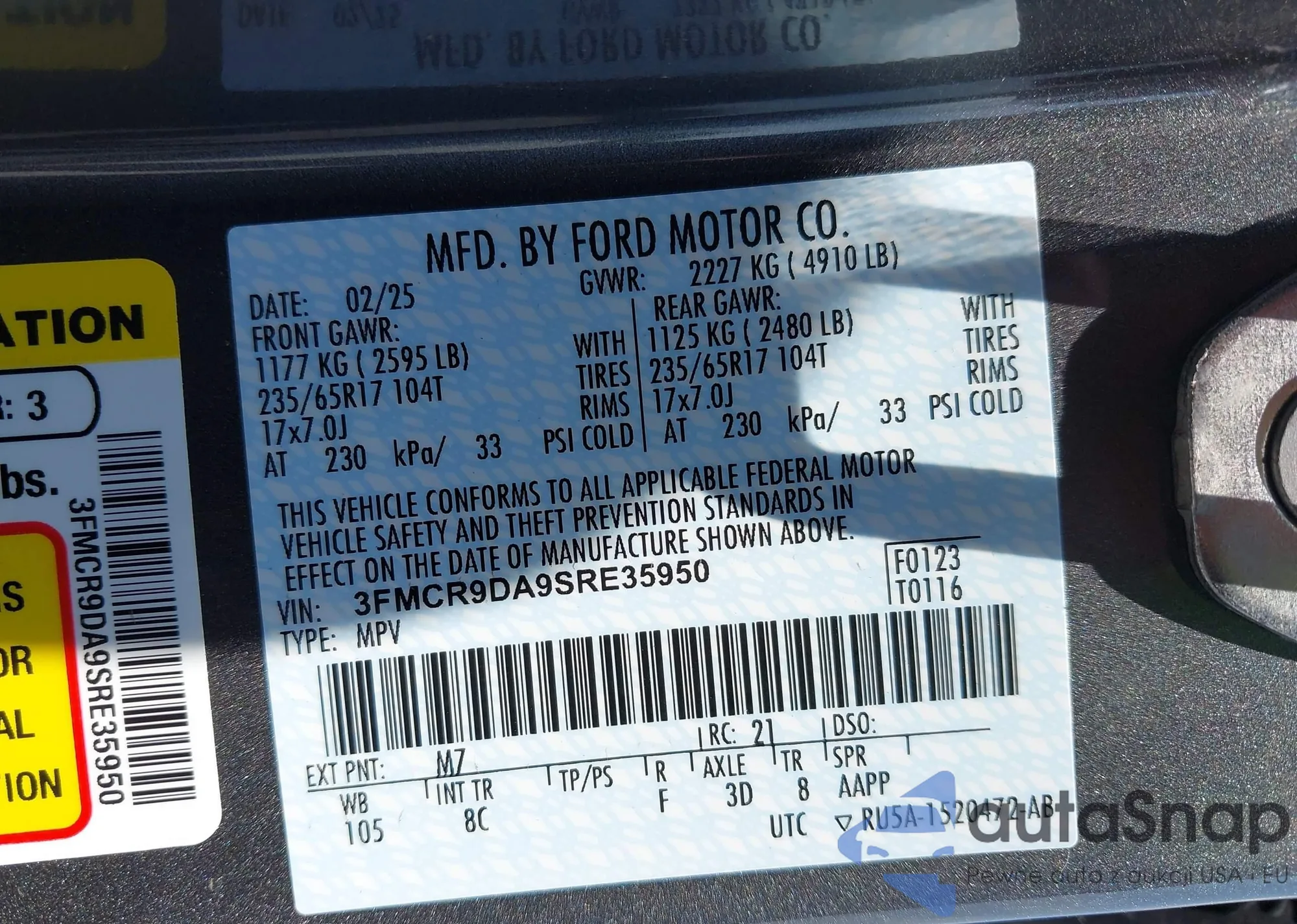 VIN: 3FMCR9DA9SRE35950