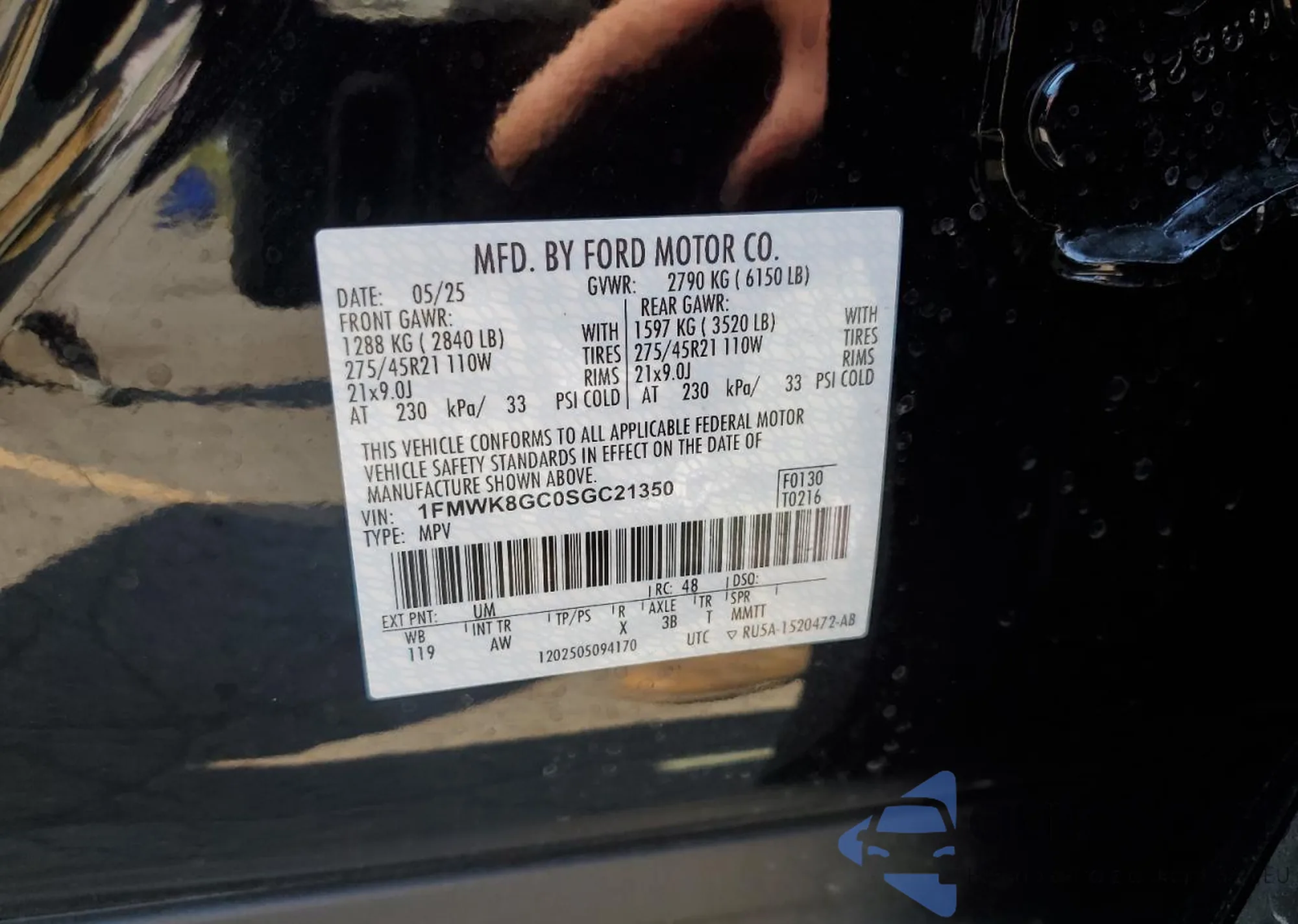 VIN: 1FMWK8GC0SGC21350