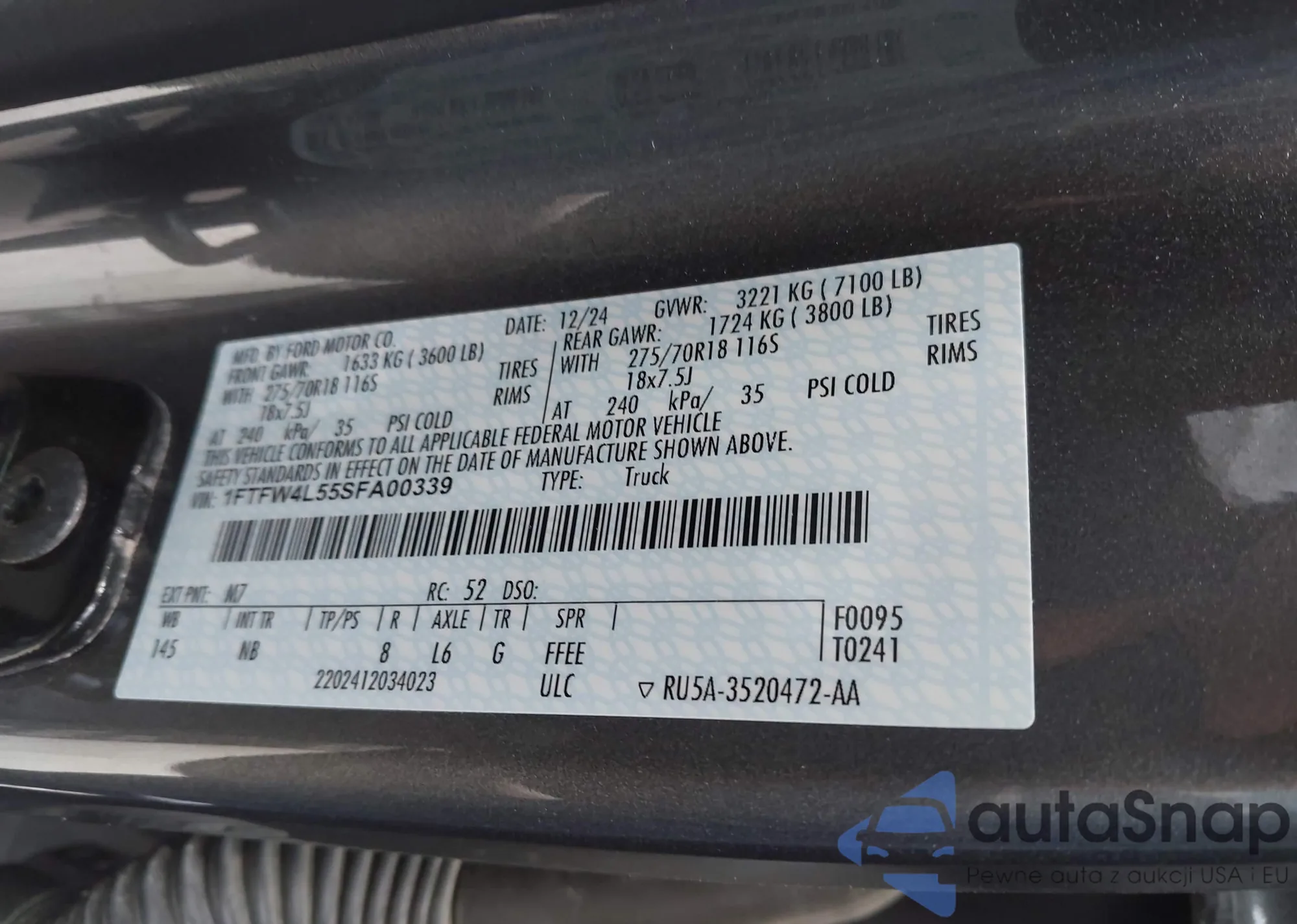 VIN: 1FTFW4L55SFA00339