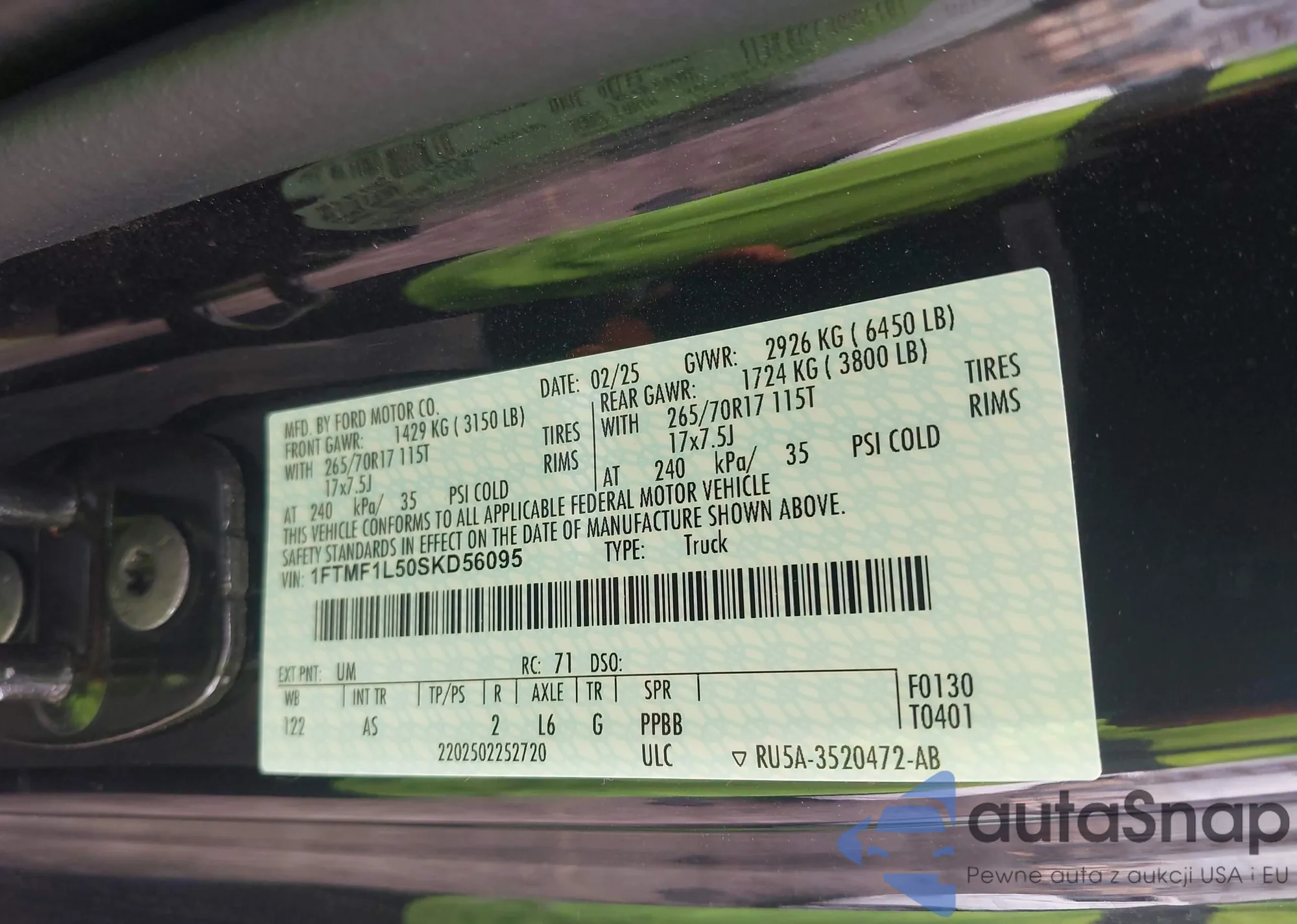 VIN: 1FTMF1L50SKD56095
