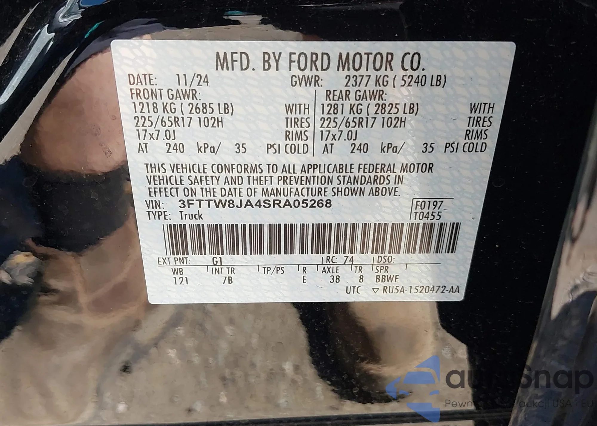 VIN: 3FTTW8JA4SRA05268