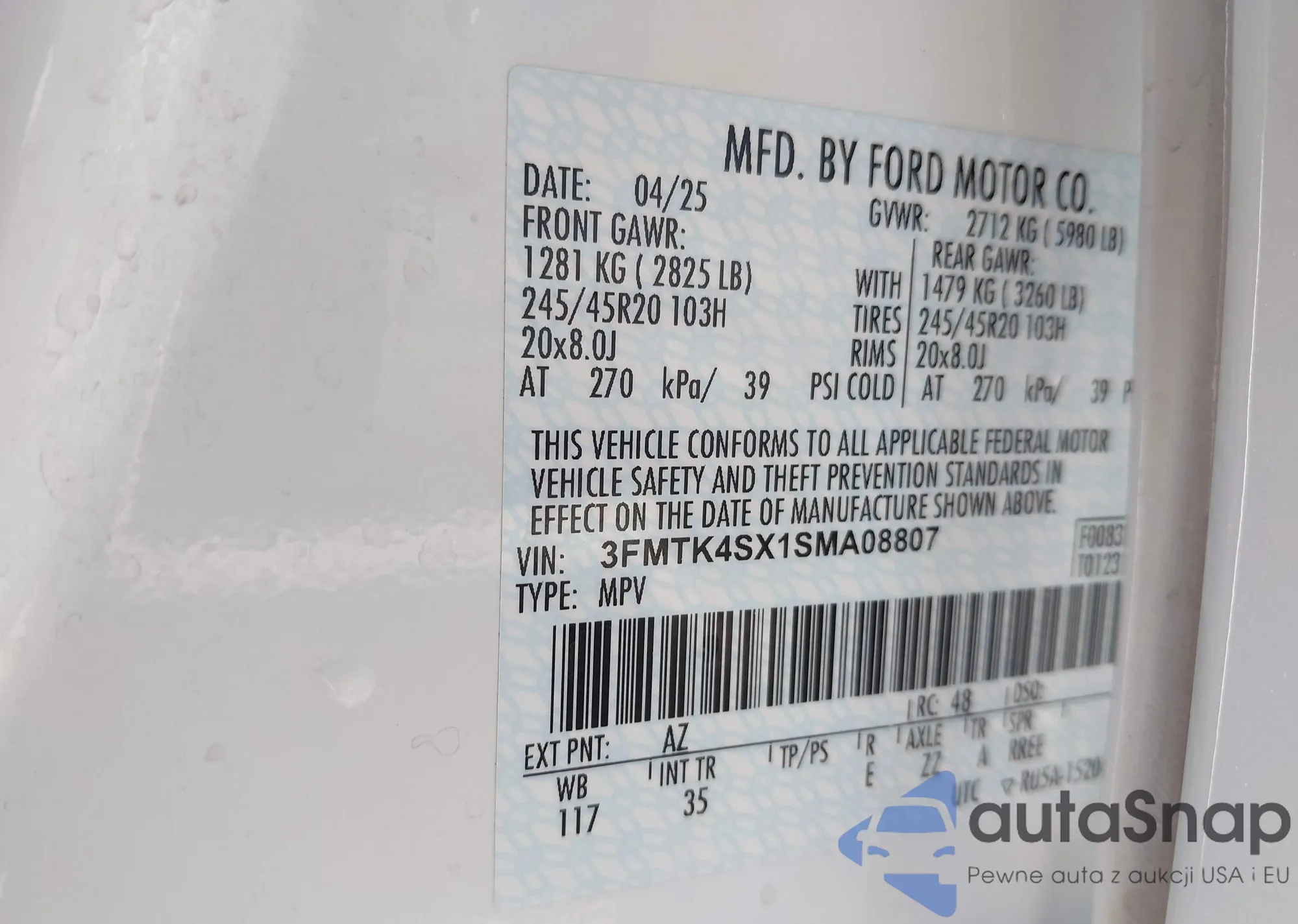 3FMTK4SX1SMA08807 IAAI