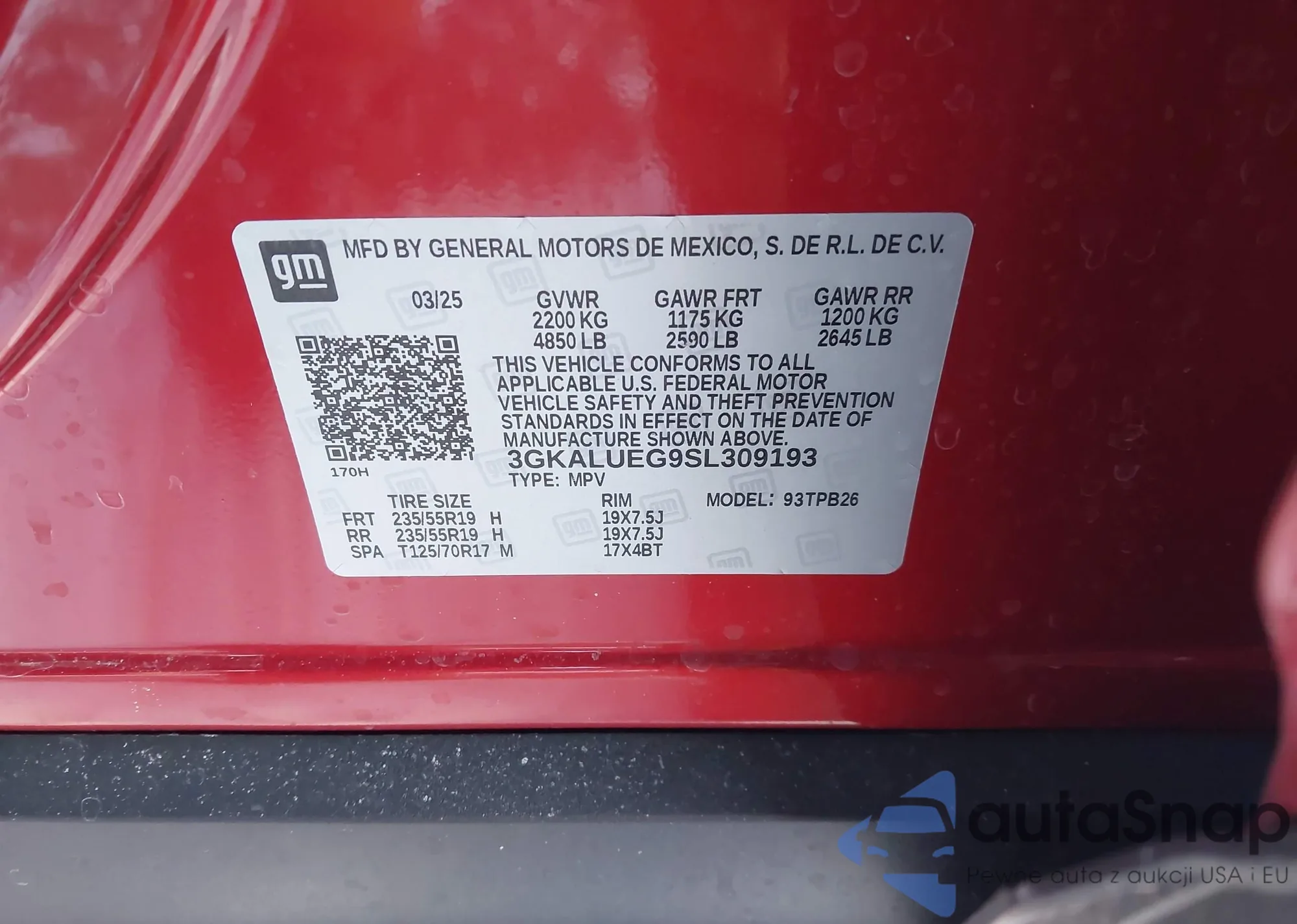 The car GMC Terrain 2025 (VIN 3GKALUEG9SL309193) has not been auctioned before. The documents are clean, and the mileage matches or is below the market average. Sold by an insurance company – we recommend purchase. Delivery to the port will take approx. 6–8 weeks.
