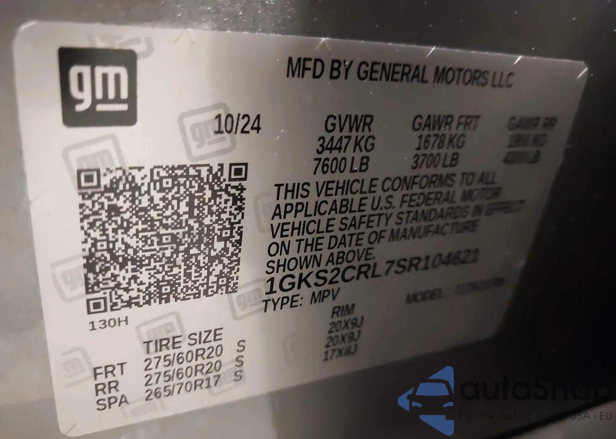 VIN: 1GKS2CRL7SR104621