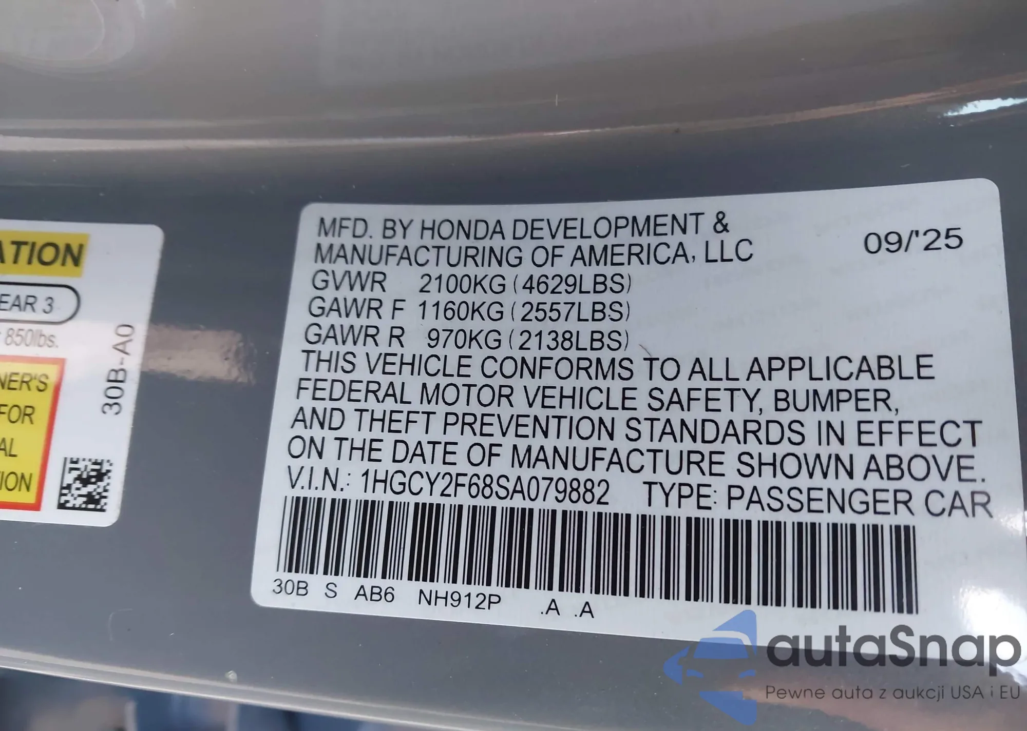 VIN: 1HGCY2F68SA079882