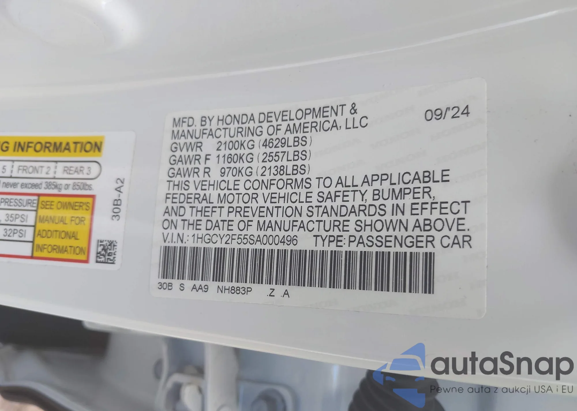 The car Honda Accord 2025 (VIN 1HGCY2F55SA000496) has not been auctioned before. The documents are clean, and the mileage matches or is below the market average. Sold by an insurance company – we recommend purchase. Delivery to the port will take approx. 6–8 weeks.