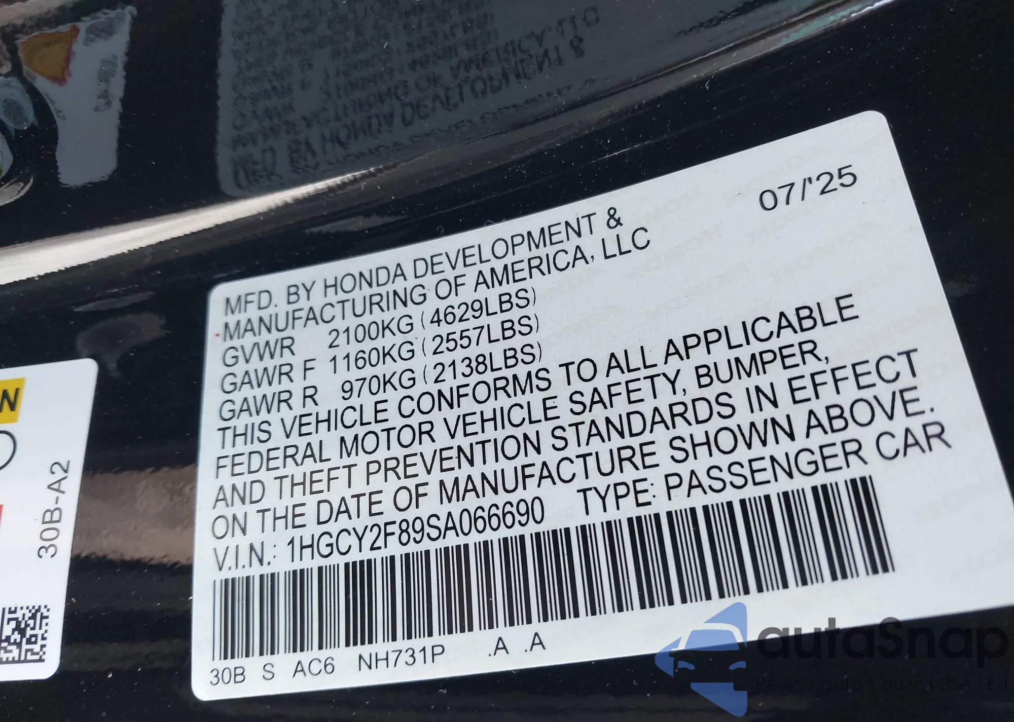 VIN: 1HGCY2F89SA066690