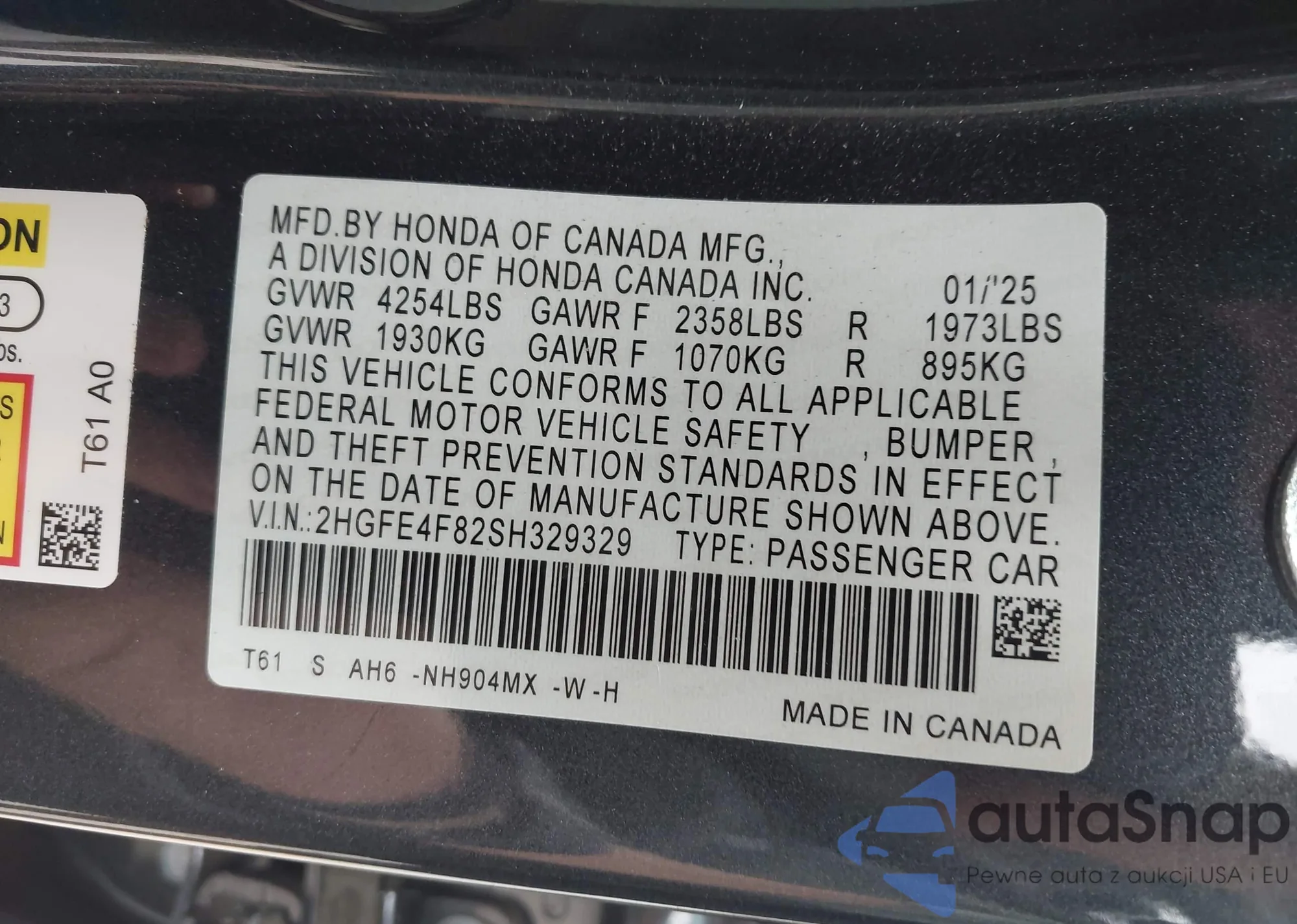VIN: 2HGFE4F82SH329329
