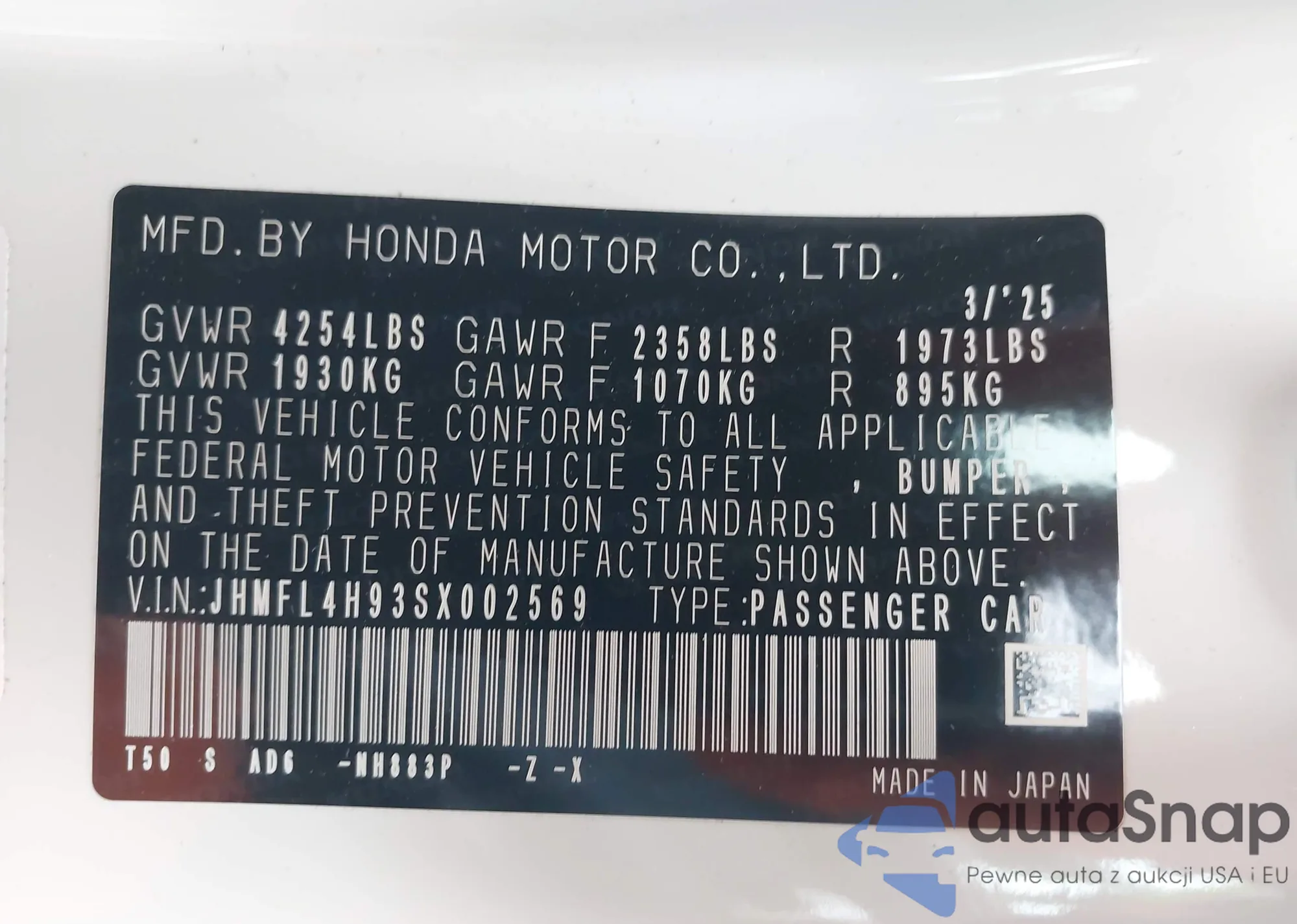 VIN: JHMFL4H93SX002569