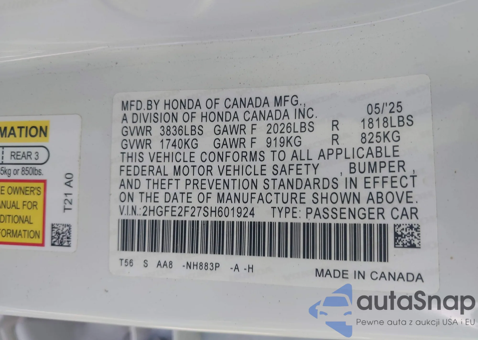 VIN: 2HGFE2F27SH601924
