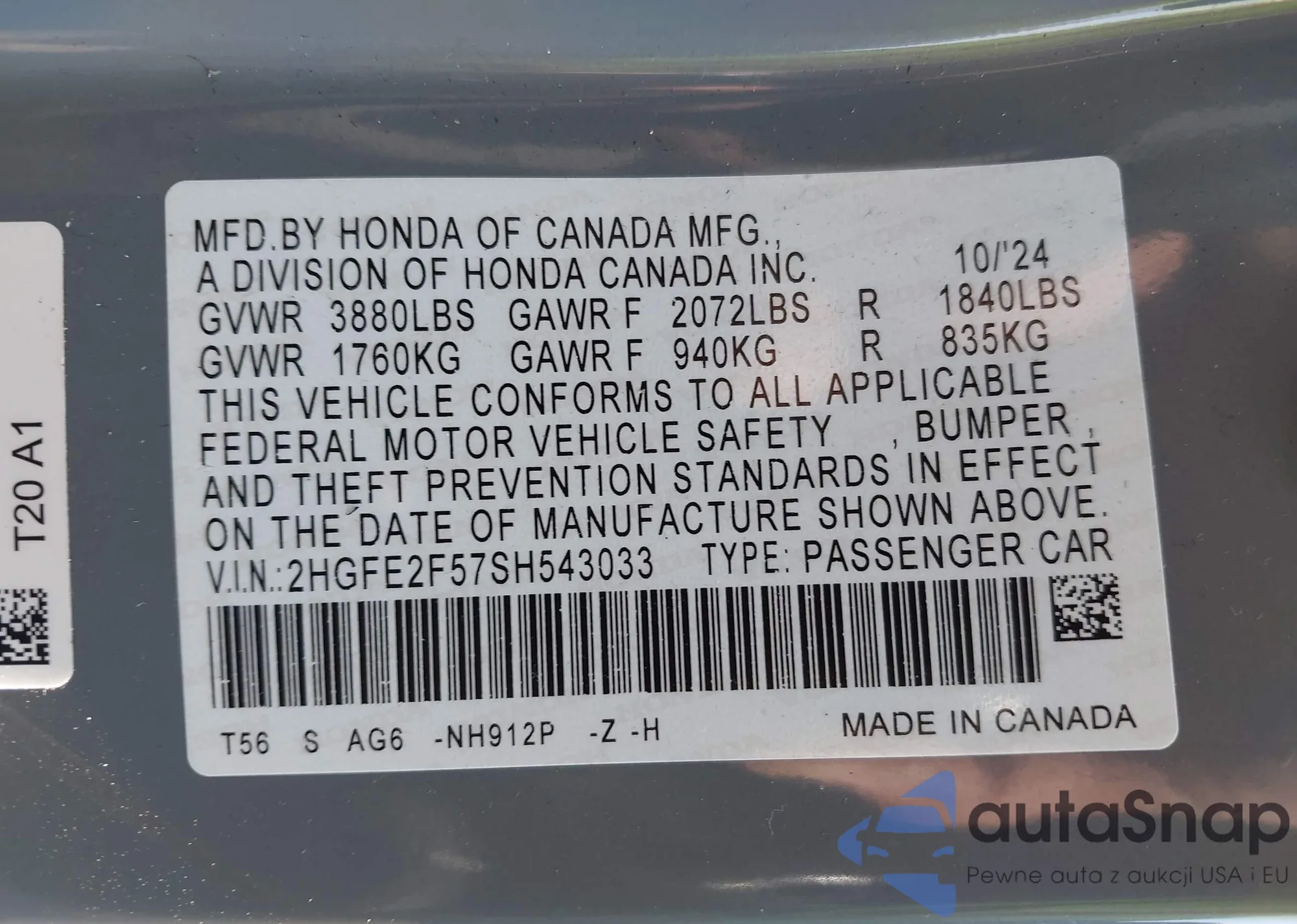 VIN: 2HGFE2F57SH543033