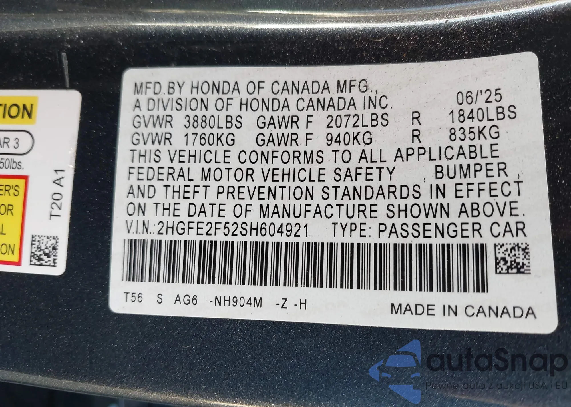 VIN: 2HGFE2F52SH604921