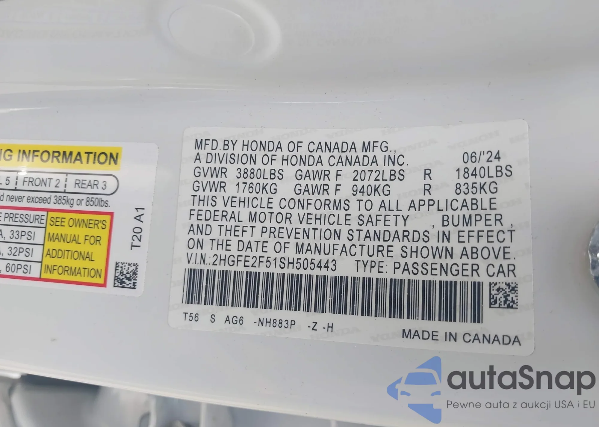 VIN: 2HGFE2F51SH505443