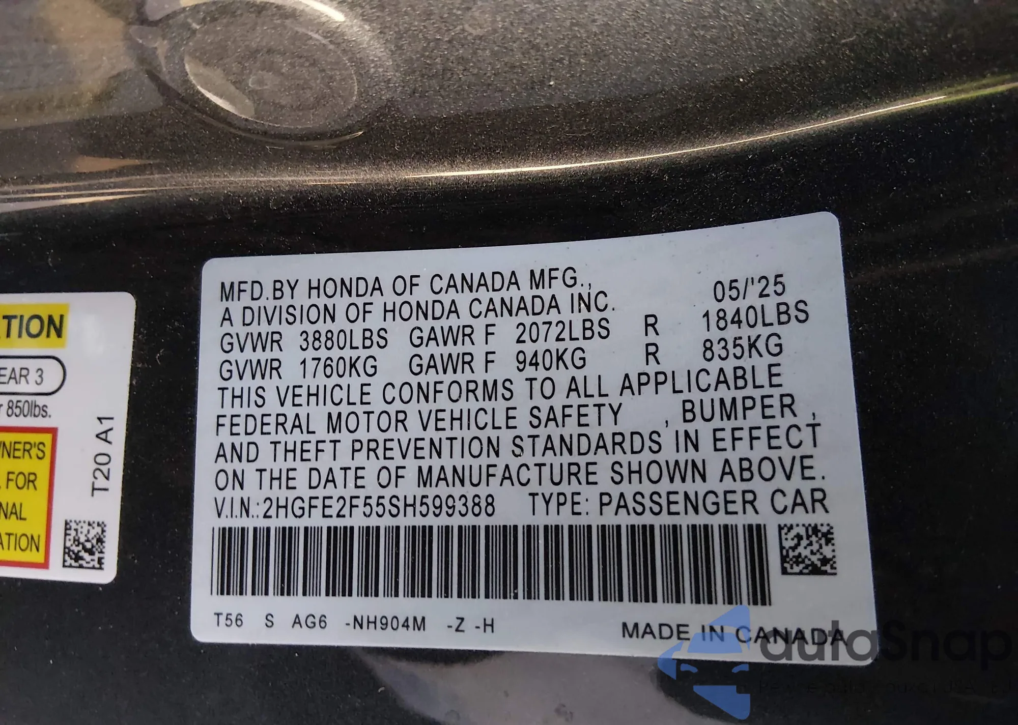VIN: 2HGFE2F55SH599388