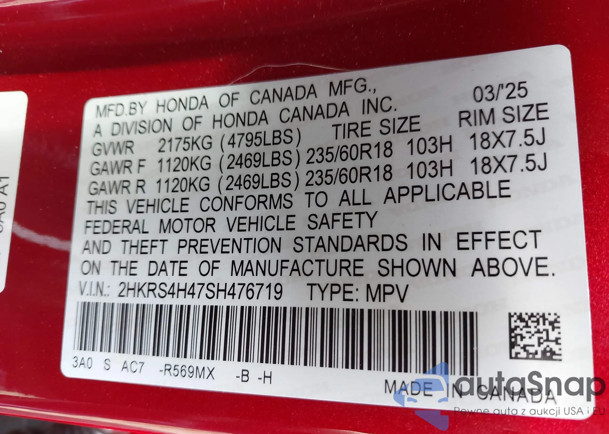 VIN: 2HKRS4H47SH476719