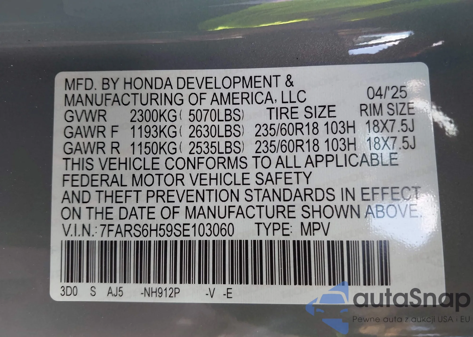 VIN: 7FARS6H59SE103060