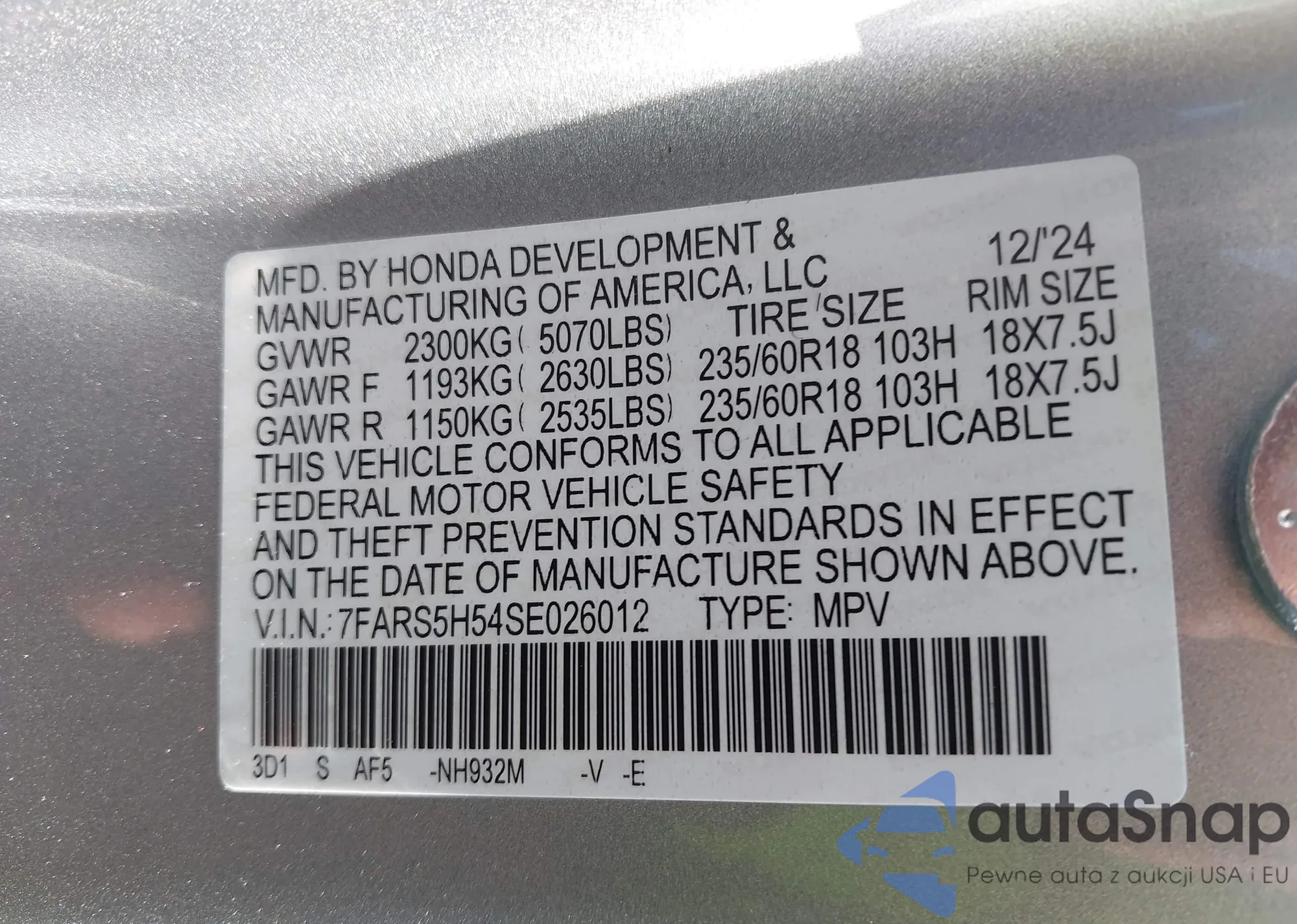 VIN: 7FARS5H54SE026012