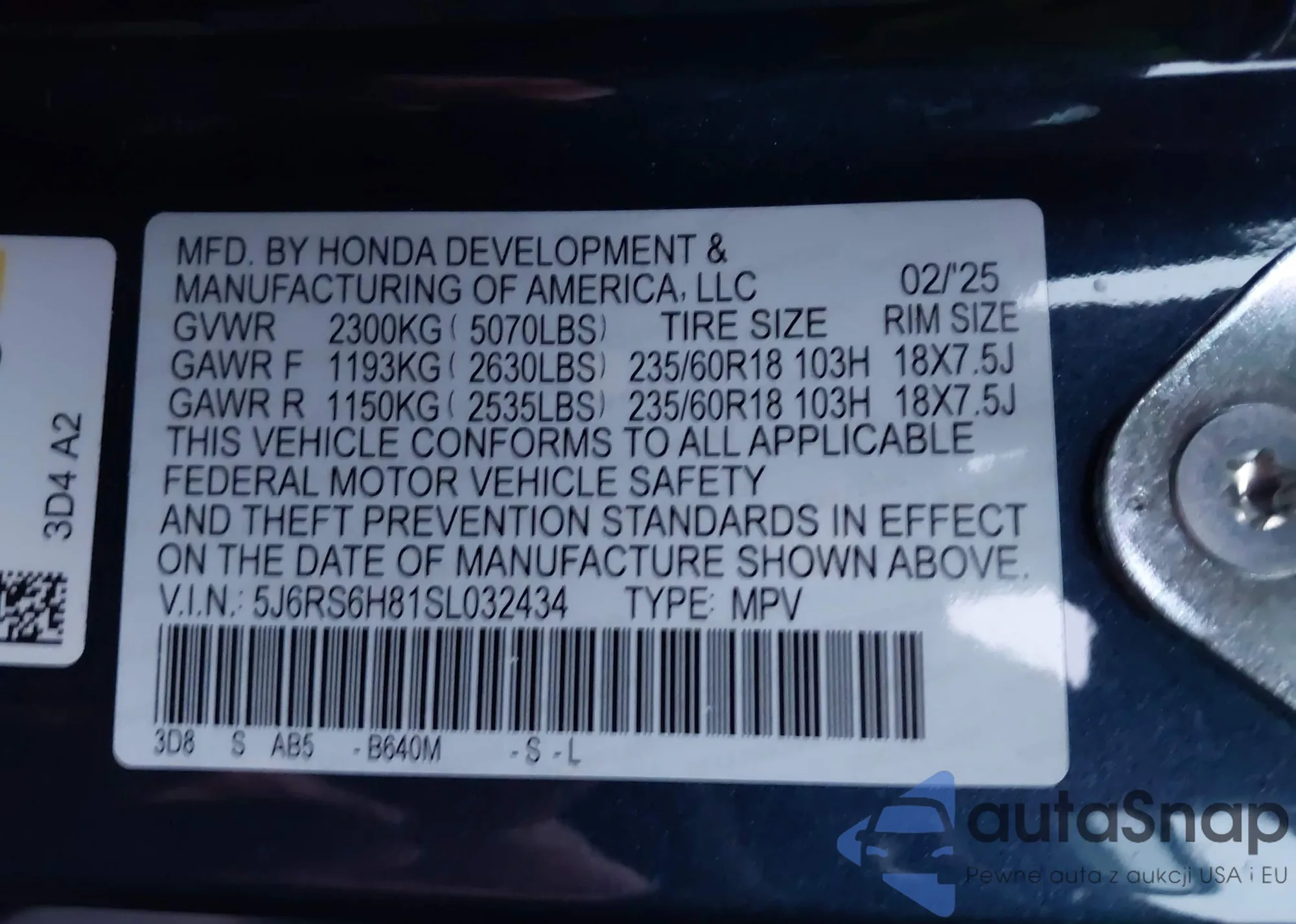 The car Honda CR-V 2025 (VIN 5J6RS6H81SL032434) has not been auctioned before. The documents are clean, and the mileage matches or is below the market average. Sold by an insurance company – we recommend purchase. Delivery to the port will take approx. 6–8 weeks.