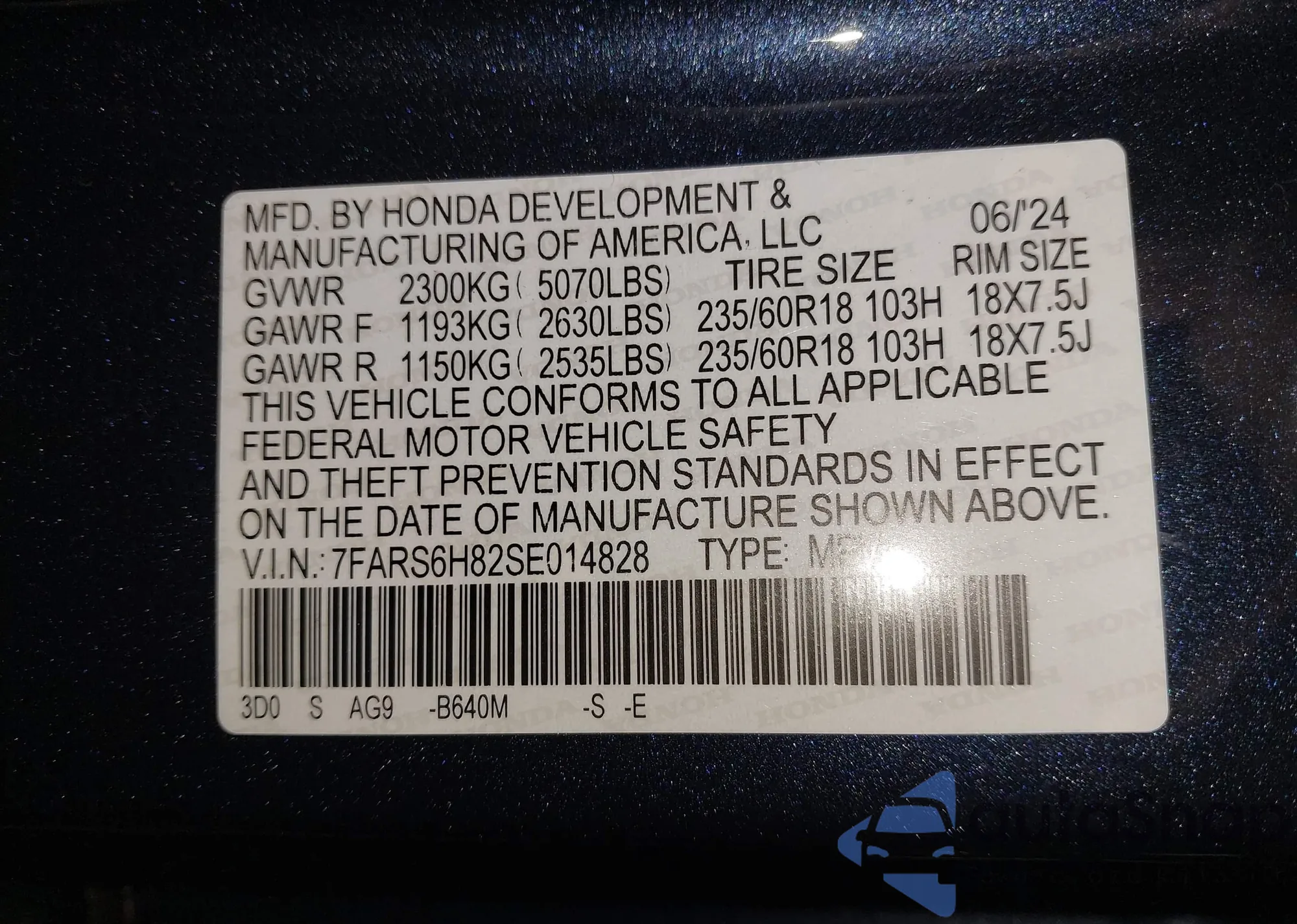VIN: 7FARS6H82SE014828