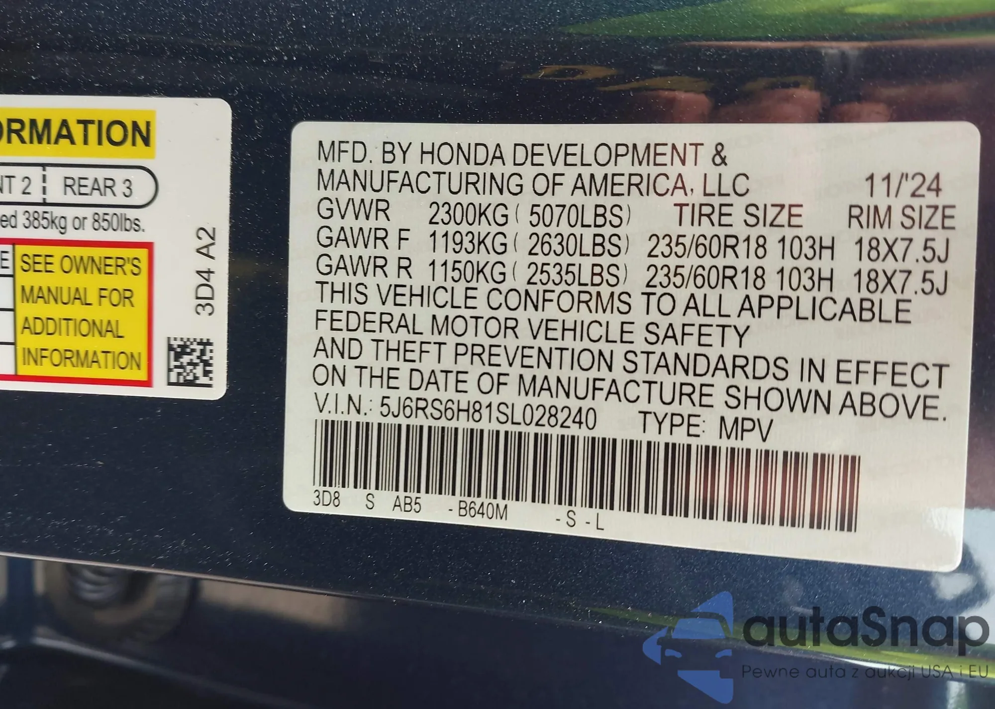 VIN: 5J6RS6H81SL028240