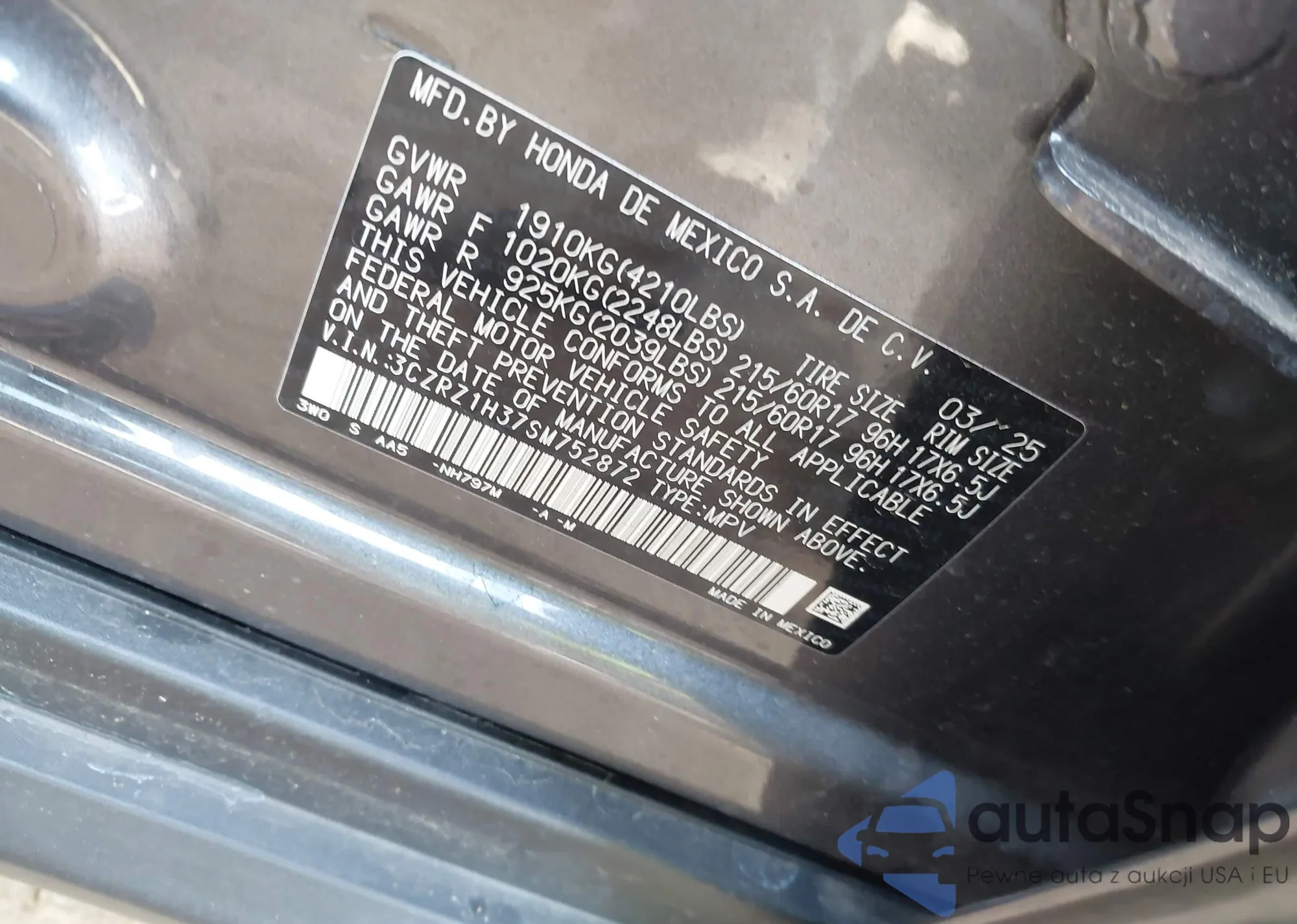 VIN: 3CZRZ1H37SM752872