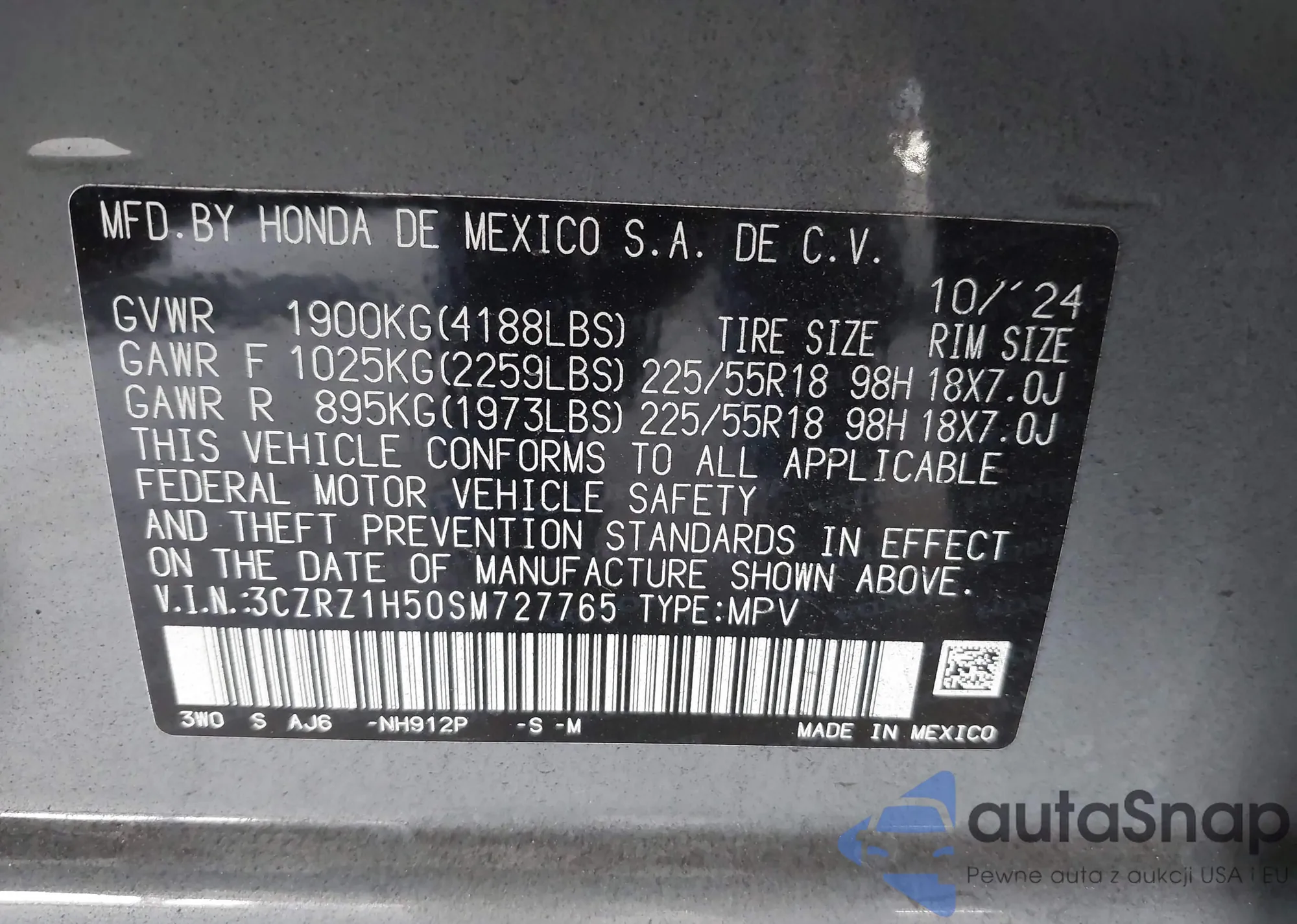 VIN: 3CZRZ1H50SM727765