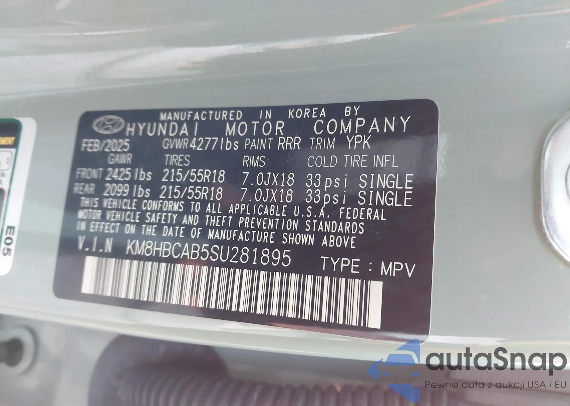 VIN: KM8HBCAB5SU281895