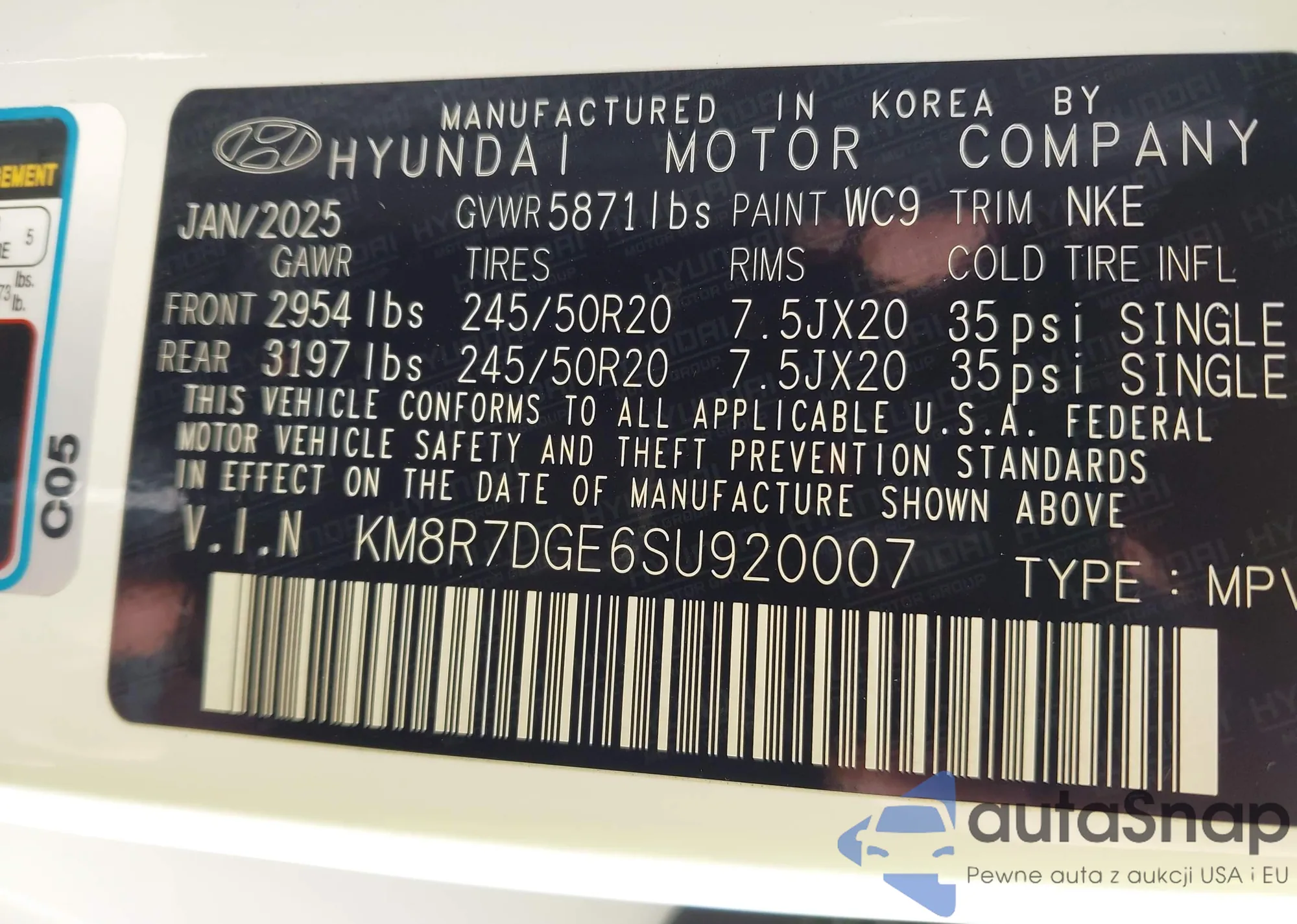 VIN: KM8R7DGE6SU920007
