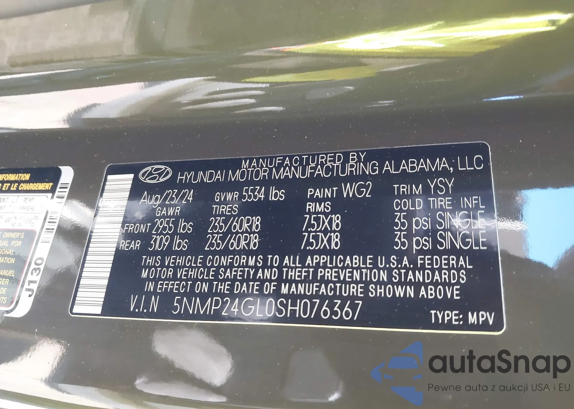 VIN: 5NMP24GL0SH076367