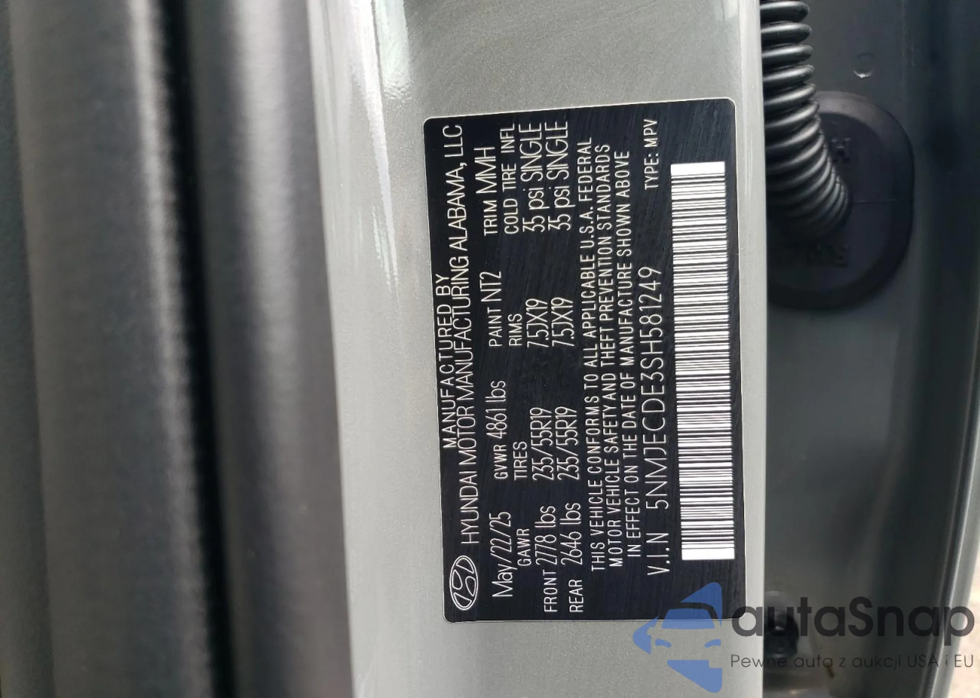 VIN: 5NMJECDE3SH581249
