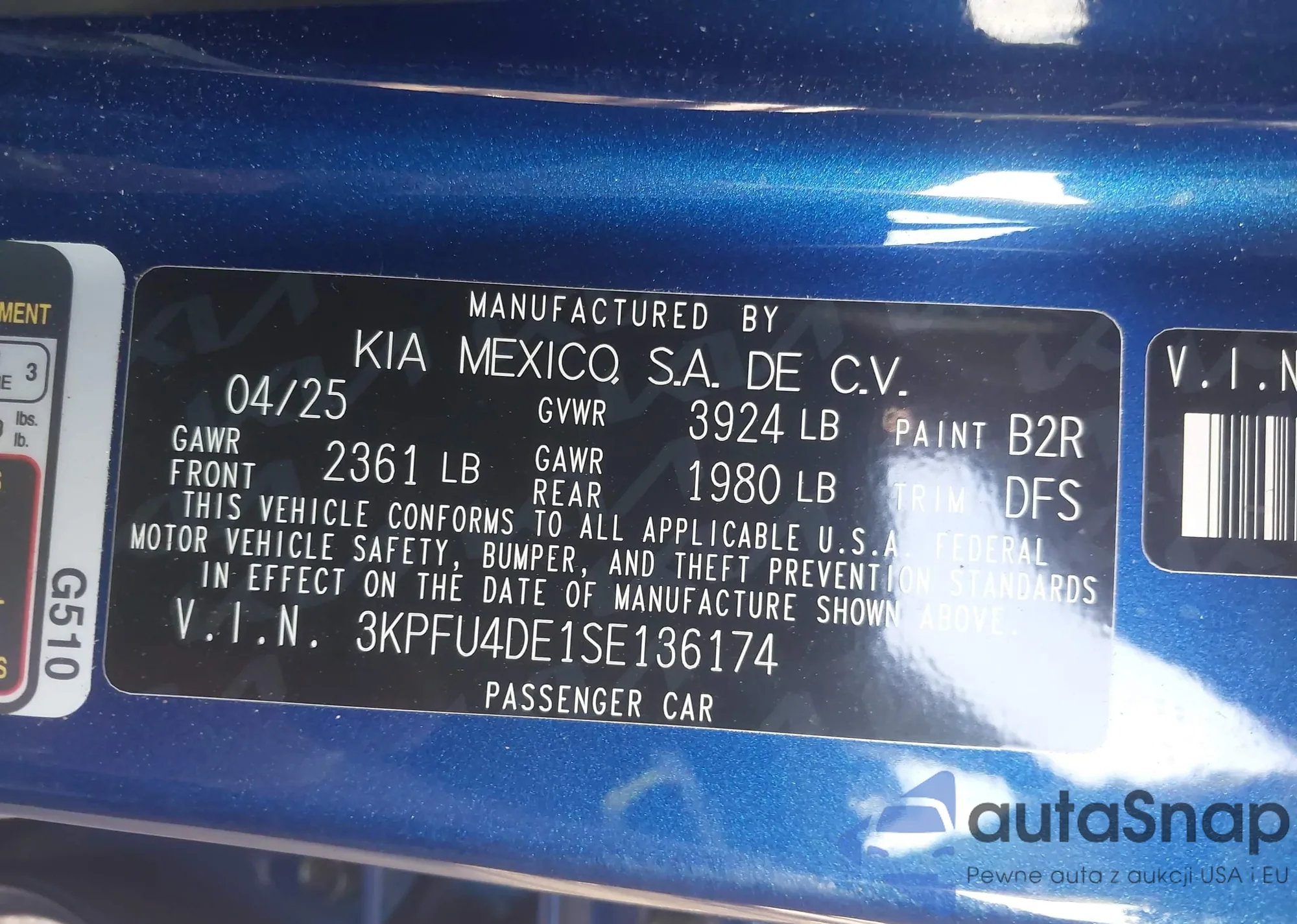 The car Kia K4 2025 (VIN 3KPFU4DE1SE136174) has not been auctioned before. The documents are clean, and the mileage matches or is below the market average. Sold by an insurance company – we recommend purchase. Delivery to the port will take approx. 6–8 weeks.