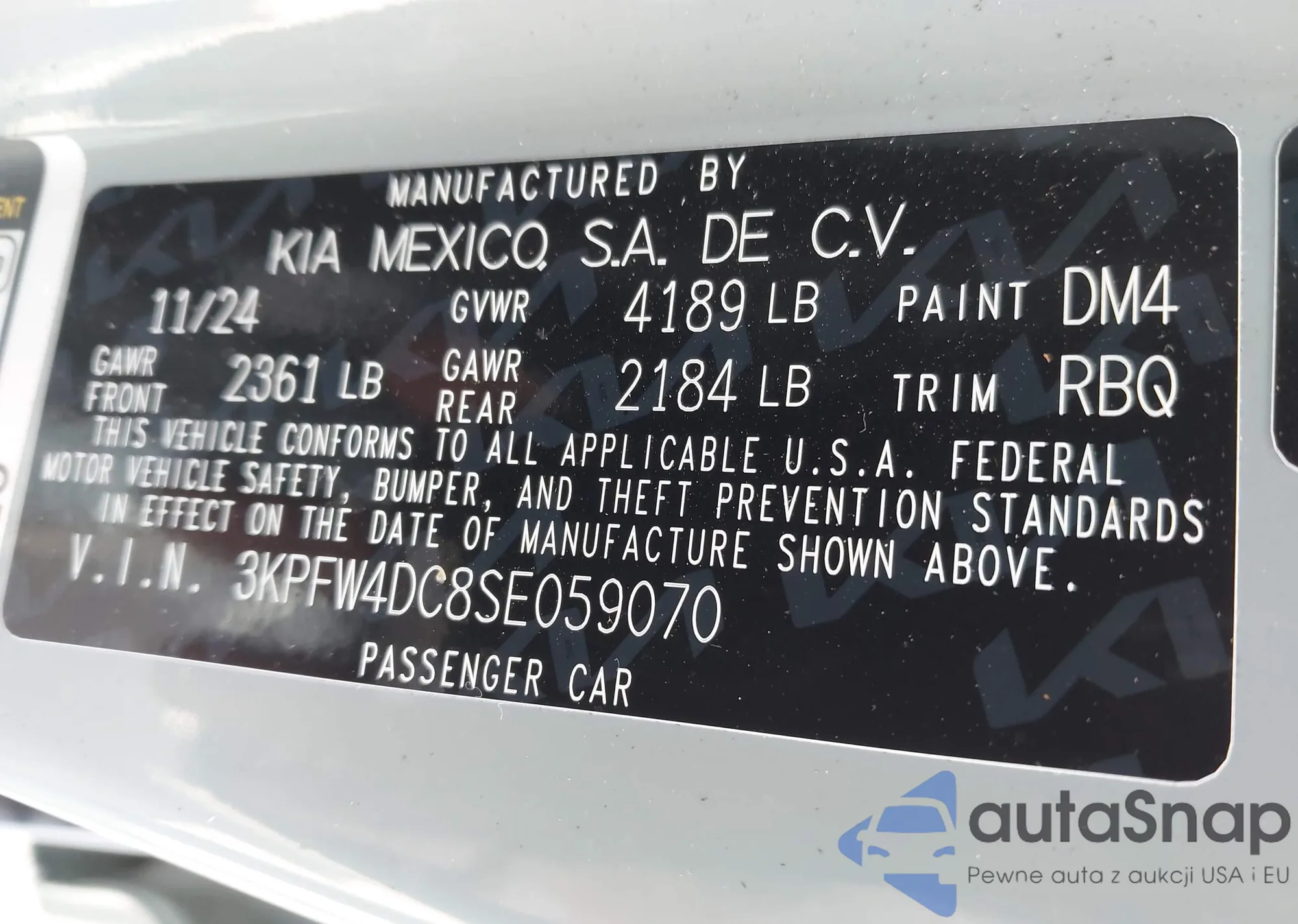 The car Kia K4 2025 (VIN 3KPFW4DC8SE059070) has not been auctioned before. The documents are clean, and the mileage matches or is below the market average. Sold by an insurance company – we recommend purchase. Delivery to the port will take approx. 6–8 weeks.