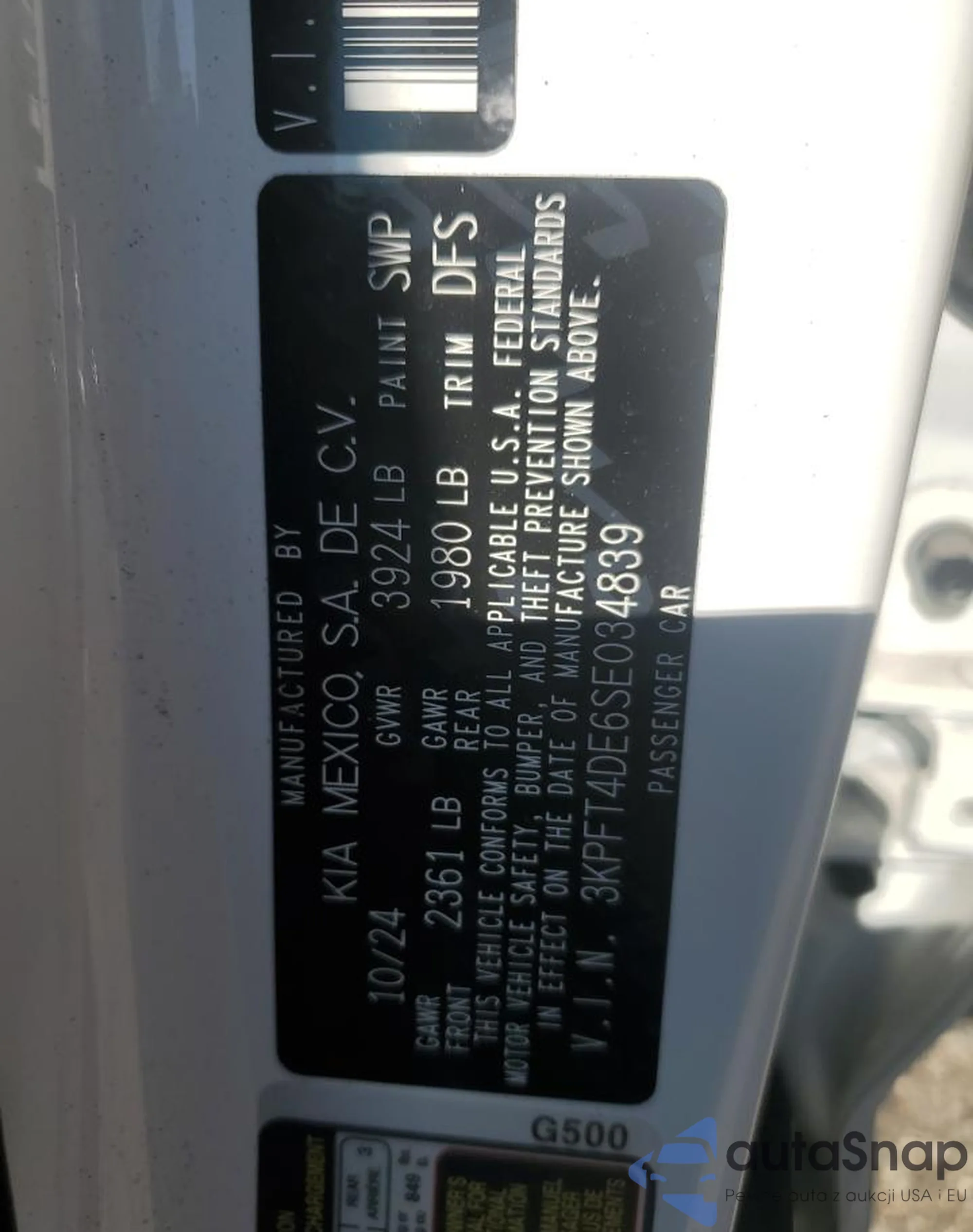 VIN: 3KPFT4DE6SE034839